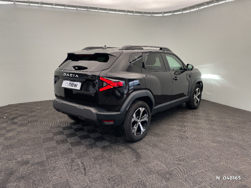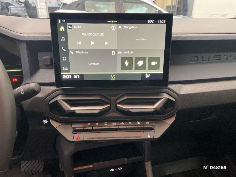 Alerte franchissement de ligne et assistant maintien dans la voie / Plancher de coffre plat / Console centrale semi haute avec accoudoir / Ouverture du hayon manuelle / My Safety Switch (bouton de déconnexion des aides à la conduite) / Media Nav Live (écran 10,1'', Navigation avec trafic en temps réel + Système audio 3D Arkamys, 6HP) / Coques de rétroviseurs Gris Megalithe / Tableau de bord numérique 7" / Antenne radio 30cm / Jantes alliage diamantées 18'' TAGASAN / Sellerie spécifique "Denim" avec logo Dacia réflechissant / Système de freinage d'urgence avancé (pieton, deux-rorues et intersection) / Système de contrôle de traction (TCS) / Signature lumineuse en "Y" à LED / Répétiteurs latéraux à LED / Boîte de vitesse automatique / Rétroviseurs extérieurs électriques, dégivrants et rabattable automatiquement / Peinture opaque / Barres de toit longitudinales / Boucliers ton carosserie / Kit de gonflage / Allumage des feux automatique et essuie-glace automatiques / Commutation automatique feux de croisement/route / Feux de croisement à LED / Appel SOS (E-call) / Avertissement distance de sécurité / Système de contrôle de trajectoire (ESC) et aide au démarrage en côte