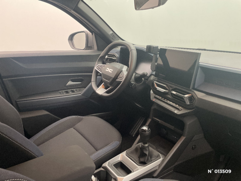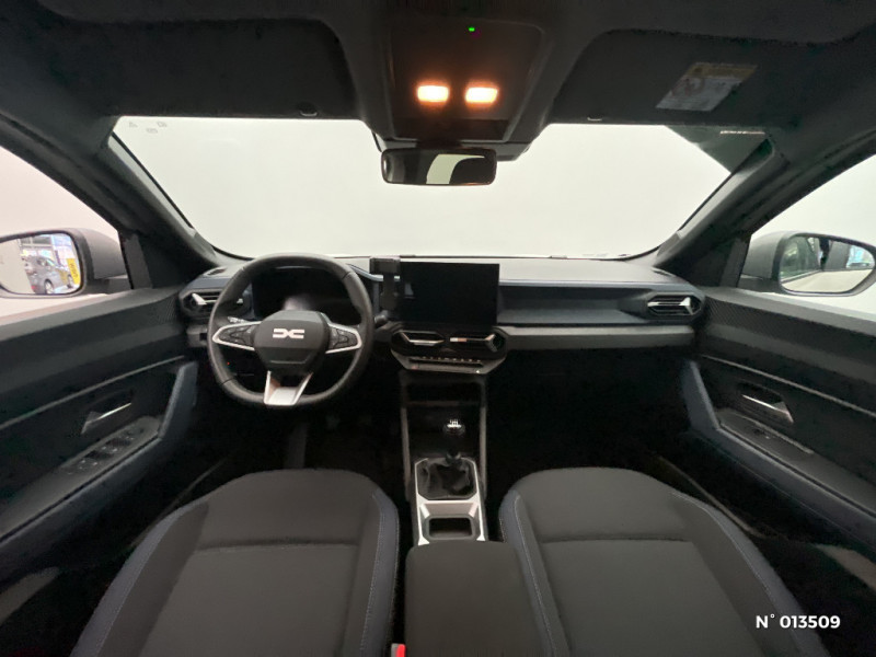 Appel SOS (E-call) / Système de contrôle de trajectoire (ESC) et aide au démarrage en côte / Sellerie spécifique "Denim" avec logo Dacia réflechissant / Système de freinage d'urgence avancé (piéton, deux-roues et intersection) / Système de contrôle de traction (TCS) / Boîte de vitesse manuelle / Rétroviseurs extérieurs électriques, dégivrants et rabattable automatiquement / Peinture opaque / Signature lumineuse en "Y" à LED / Répétiteurs latéraux à LED / Alerte franchissement de ligne et assistant maintien dans la voie / Plancher de coffre plat / Console centrale semi haute avec accoudoir / Ouverture du hayon manuelle / My Safety Switch (bouton de déconnexion des aides à la conduite) / Media Nav Live (écran 10,1'', Navigation avec trafic en temps réel + Système audio 3D Arkamys, 6HP) / Coques de rétroviseurs Gris Megalithe / Tableau de bord numérique 7" / Antenne radio 30cm / Jantes alliage diamantées 18'' TAGASAN / Barres de toit longitudinales / Boucliers ton carosserie / Kit de gonflage / Allumage des feux automatique et essuie-glace automatiques / Commutation automatique feux de croisement/route / Feux de croisement à LED / Avertissement distance de sécurité