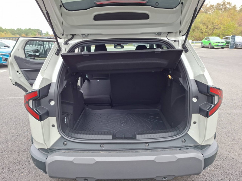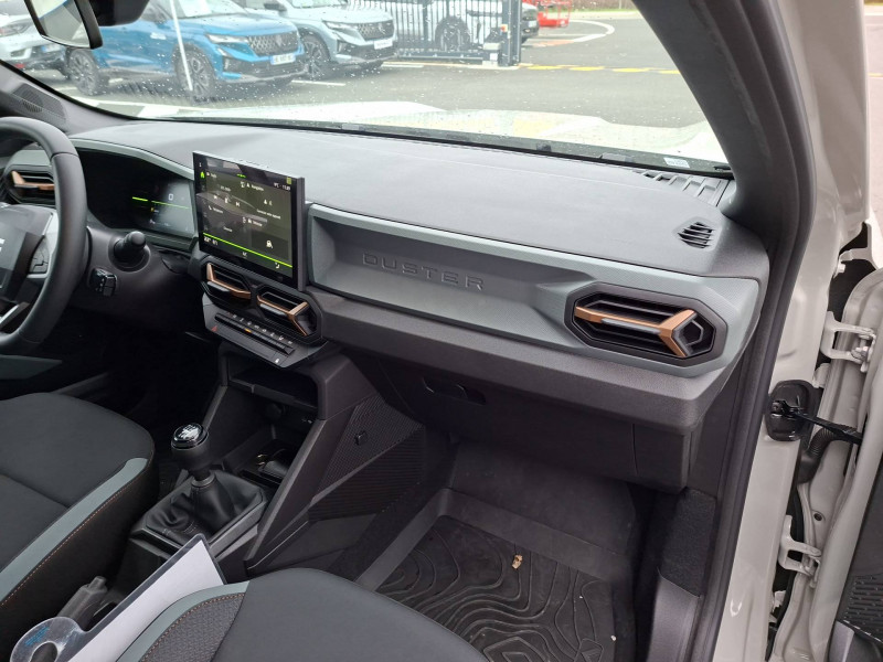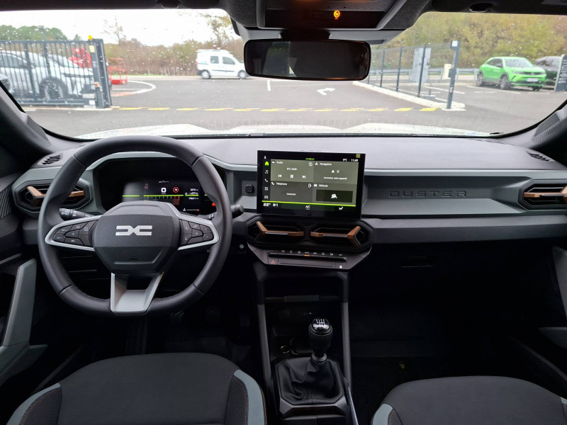 Alerte franchissement de ligne et assistant maintien dans la voie / Allumage des feux automatique et essuie-glace automatiques / Antenne radio 30cm / Appel SOS (E-call) / Avertissement distance de sécurité / Boîte de vitesse manuelle / Boucliers ton carosserie / Commutation automatique feux de croisement/route / Console centrale semi haute avec accoudoir / Contrôle de trajectoire en descente avancé / Coques de rétroviseurs Brun Cuivré / Feux de croisement à LED / Kit de gonflage / Media Display (écran 10,1'',4 HP, réplication smartphone sans fil, services connectés) / My Safety Switch (bouton de déconnexion des aides à la conduite) / Ouverture du hayon manuelle / Répétiteurs latéraux à LED / Rétroviseurs extérieurs électriques, dégivrants et rabattable automatiquement / Sellerie TEP "Microcloud"avec logo Dacia / Siège passager réglable en hauteur + lombaire conducteur / Signature lumineuse en "Y" à LED / Système de contrôle de traction (TCS) / Système de freinage d'urgence avancé (piéton, deux-roues et intersection) / Tableau de bord numérique 7"