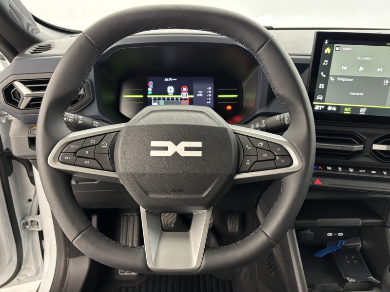 6 Haut parleurs / Bacs de portes avant / Blanc Glacier / Boucliers AV et AR couleur caisse / Commande Mode ECO / Compte tours / Détecteur de sous-gonflage / Feux de route automatiques / Filtre à Pollen / Indicateur de limitation de vitesse / Lampe de coffre / Lampes de lecture à l'avant / Ouverture des vitres séquentielle / Phares avant LED / Plancher de coffre mobile / Poignées ton carrosserie / Porte-gobelets avant / Pré-équipement Radio / Prise auxiliaire de connexion audio / Radar de distance / Sièges rang 2 rabattables à plat / Spécifique Denim logo Dacia réfléchiss / Système de détection de somnolence / Système Hi-Fi Surround / Tablette cache bagages / Température extérieure / TMC / Verrouillage auto. des portes en roulant / Siège passager réglable en hauteur + lombaire conducteur (option inclus) / Sièges AV chauffants (option inclus) / Pack Cold Sièges AV chauffants + Volant chauffant +siège passager réglable en hauteur & lombaire conducteur? Sièges AV chauffants? Volant chauffant, Siège passager réglable en hauteur + lombaire conducteur (option inclus) /