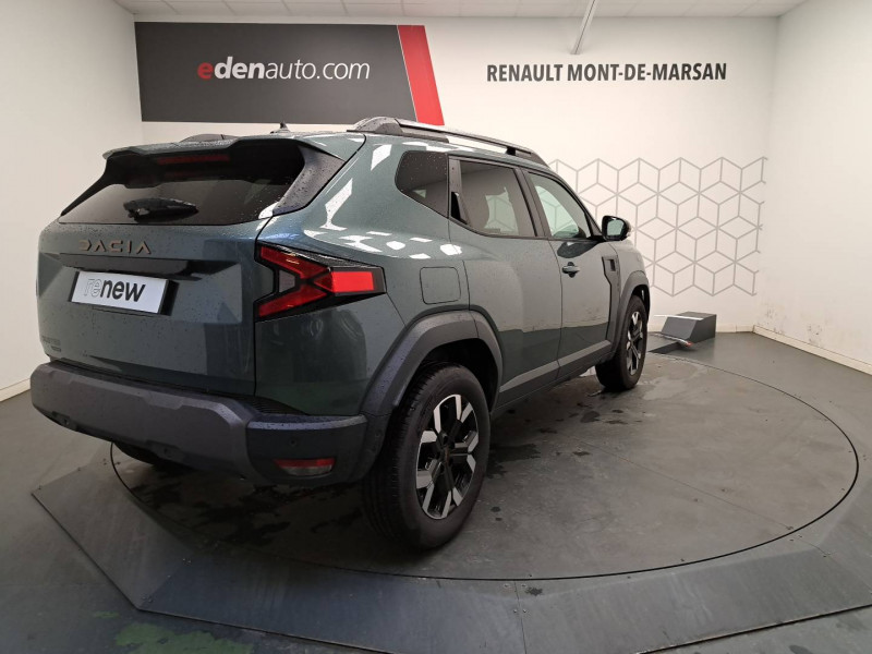 Alerte franchissement de ligne et assistant maintien dans la voie / Allumage des feux automatique et essuie-glace automatiques / Antenne radio 30cm / Appel SOS (E-call) / Avertissement distance de sécurité / Boîte de vitesse automatique 6 / Boucliers ton carosserie / Commutation automatique feux de croisement/route / Console centrale semi haute avec accoudoir / Contrôle de trajectoire en descente avancé / Coques de rétroviseurs Brun Cuivré / Feux de croisement à LED / Kit de gonflage / Media Display (écran 10,1'',4 HP, réplication smartphone sans fil, services connectés) / My Safety Switch (bouton de déconnexion des aides à la conduite) / Ouverture du hayon manuelle / Répétiteurs latéraux à LED / Rétroviseurs extérieurs électriques, dégivrants et rabattable automatiquement / Sellerie TEP "Microcloud"avec logo Dacia / Siège passager réglable en hauteur + lombaire conducteur / Signature lumineuse en "Y" à LED / Système de contrôle de traction (TCS) / Système de freinage d'urgence avancé (piéton, deux-roues et intersection) / Tableau de bord numérique 7"