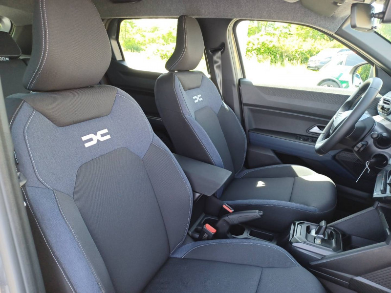 Alerte franchissement de ligne et assistant maintien dans la voie / Allumage des feux automatique et essuie-glace automatiques / Antenne radio 30cm / Appel SOS (E-call) / Avertissement distance de sécurité / Barres de toit longitudinales / Boîte de vitesse automatique 6 / Boucliers ton carosserie / Cléà radiofréquence / Console centrale semi haute avec accoudoir / Coques de rétroviseurs Gris Megalithe / Feux de croisement à LED / Jantes alliage 17" diamantées TERGAN / Kit de gonflage / Media Display (écran 10,1'',4 HP, réplication smartphone sans fil, services connectés) / My Safety Switch (bouton de déconnexion des aides à la conduite) / Ouverture du hayon manuelle / Peinture opaque / Répétiteurs latéraux à LED / Sellerie spécifique "Denim" avec logo Dacia réflechissant / Signature lumineuse en "Y" à LED / Système de contrôle de traction (TCS) / Système de contrôle de trajectoire (ESC) et aide au démarrage en côte / Système de freinage d'urgence avancé (piéton, deux-roues et intersection) / Tableau de bord numérique 7"