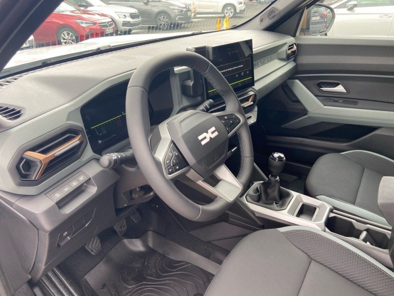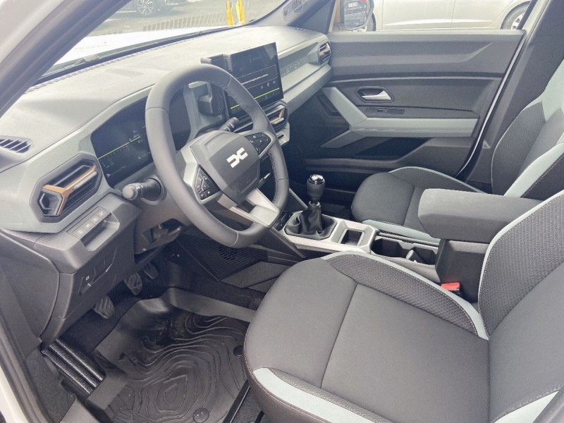 Coques de rétroviseurs Brun Cuivre / Répétiteurs latéraux à LED / Signature lumineuse en "Y" à LED / Sellerie TEP "MicroCloud"avec logo Dacia / Console centrale semi-haute avec accoudoir / Équipement isofix / Commutation automatique feux de croisement/route / Alerte franchissement de ligne et assistant maintien dans la voie / Feux de croisement à LED / voeu / Allumage des feux automatique + Essuie-glace automatique / Tableau de bord numérique 7'' / deux-roues et intersection) / Kit de gonflage / Avertissement distance de sécurité / Appel SOS (E-call) / Système de contrôle de trajectoire (ESC) + aide au démarrage en côte / My Safety Switch (bouton de déconnexion des aides à la conduite) / Media Display (écran 10.1''- Apple Car Play Android Auto) / Barres de toit longitudinales