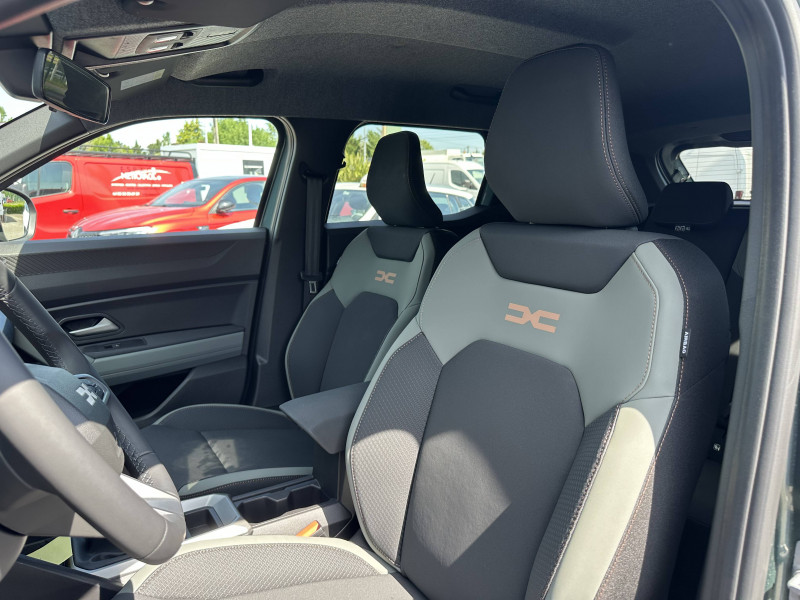 Alerte franchissement de ligne et assistant maintien dans la voie / Allumage des feux automatique et essuie-glace automatiques / Antenne radio 30cm / Appel SOS (E-call) / Avertissement distance de sécurité / Boîte de vitesse manuelle / Boucliers ton carosserie / Commutation automatique feux de croisement/route / Console centrale semi haute avec accoudoir / Contrôle de trajectoire en descente avancé / Coques de rétroviseurs Brun Cuivré / Feux de croisement à LED / Kit de gonflage / Media Display (écran 10,1'',4 HP, réplication smartphone sans fil, services connectés) / My Safety Switch (bouton de déconnexion des aides à la conduite) / Ouverture du hayon manuelle / Répétiteurs latéraux à LED / Rétroviseurs extérieurs électriques, dégivrants et rabattable automatiquement / Sellerie TEP "Microcloud"avec logo Dacia / Siège passager réglable en hauteur + lombaire conducteur / Signature lumineuse en "Y" à LED / Système de contrôle de traction (TCS) / Système de freinage d'urgence avancé (piéton, deux-roues et intersection) / Tableau de bord numérique 7"