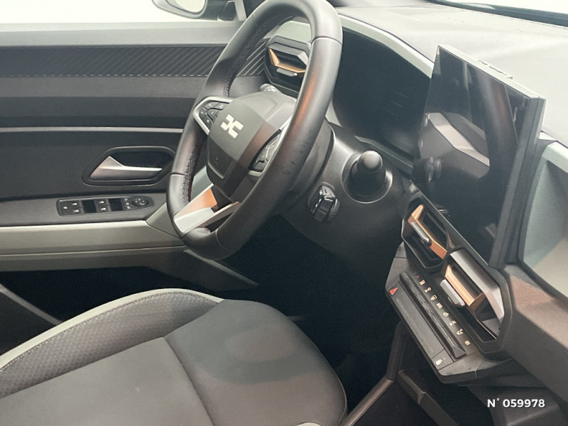 Contrôle de trajectoire en descente avancé / Sans rangement coffre / Système de freinage d'urgence avancé (pieton, deux-rorues et intersection) / Système de contrôle de traction (TCS) / Boîte de vitesse automatique / Rétroviseurs extérieurs électriques, dégivrants et rabattable automatiquement / Peinture opaque / Allumage des feux automatique et essuie-glace automatiques / Commutation automatique feux de croisement/route / Feux de croisement à LED / Siège passager réglable en hauteur + lombaire conducteur / Appel SOS (E-call) / Avertissement distance de sécurité / Signature lumineuse en "Y" à LED / Répétiteurs latéraux à LED / Alerte franchissement de ligne et assistant maintien dans la voie / Console centrale semi haute avec accoudoir / Ouverture du hayon manuelle / My Safety Switch (bouton de déconnexion des aides à la conduite) / Boucliers ton carosserie / Kit de gonflage / Sellerie TEP "Microcloud"avec logo Dacia réfléchissant / Media Display (écran 10,1'',4 HP, réplication smartphone sans fil, services connectés) / Coques de rétroviseurs Brun Cuivré / Tableau de bord numérique 7" / Antenne radio 30cm / Jantes alliage semi-diamantées 17'' TERGAN