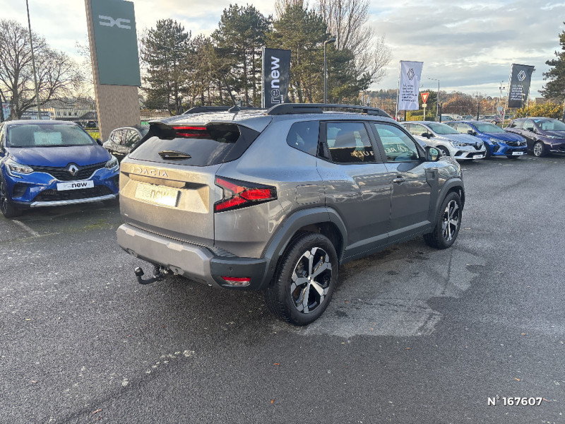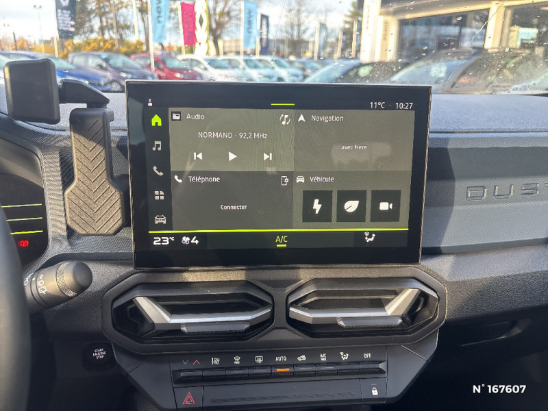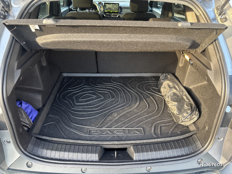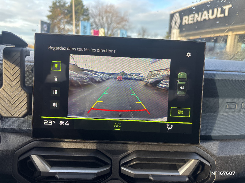 Barres de toit longitudinales / Allumage des feux automatique et essuie-glace automatiques / Commutation automatique feux de croisement/route / Feux de croisement à LED / Appel SOS (E-call) / Avertissement distance de sécurité / Système de contrôle de trajectoire (ESC) et aide au démarrage en côte / Alerte franchissement de ligne et assistant maintien dans la voie / Plancher de coffre plat / Console centrale semi haute avec accoudoir / Ouverture du hayon manuelle / My Safety Switch (bouton de déconnexion des aides à la conduite) / Media Nav Live (écran 10,1'', Navigation avec trafic en temps réel + Système audio 3D Arkamys, 6HP) / Coques de rétroviseurs Gris Megalithe / Tableau de bord numérique 7" / Antenne radio 30cm / Jantes alliage diamantées 18'' TAGASAN / Harmonie intérieure "Demin" / Sellerie spécifique "Denim" avec logo Dacia réflechissant / Système de freinage d'urgence avancé (pieton, deux-rorues et intersection) / Signature lumineuse en "Y" à LED / Répétiteurs latéraux à LED / Boucliers ton carosserie / Kit de gonflage