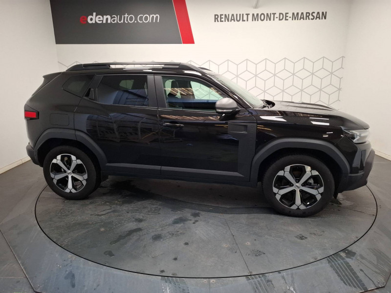 Alerte franchissement de ligne et assistant maintien dans la voie / Allumage des feux automatique et essuie-glace automatiques / Antenne radio 30cm / Appel SOS (E-call) / Avertissement distance de sécurité / Barres de toit longitudinales / Boîte de vitesse automatique 6 / Boucliers ton carosserie / Commutation automatique feux de croisement/route / Console centrale semi haute avec accoudoir / Coques de rétroviseurs Gris Megalithe / Feux de croisement à LED / Jantes alliage diamantées 18'' TAGASAN / Kit de gonflage / Media Nav Live ( Navigation avec trafic en temps réel + Système audio 3D Arkamys, 6HP, écram 10,1") / My Safety Switch (bouton de déconnexion des aides à la conduite) / Ouverture du hayon manuelle / Plancher de coffre plat / Répétiteurs latéraux à LED / Rétroviseurs extérieurs électriques, dégivrants et rabattable automatiquement / Sellerie spécifique "Denim" avec logo Dacia réflechissant / Signature lumineuse en "Y" à LED / Système de contrôle de traction (TCS) / Système de contrôle de trajectoire (ESC) et aide au démarrage en côte / Système de freinage d'urgence avancé (piéton, deux-roues et intersection) / Tableau de bord numérique 7"