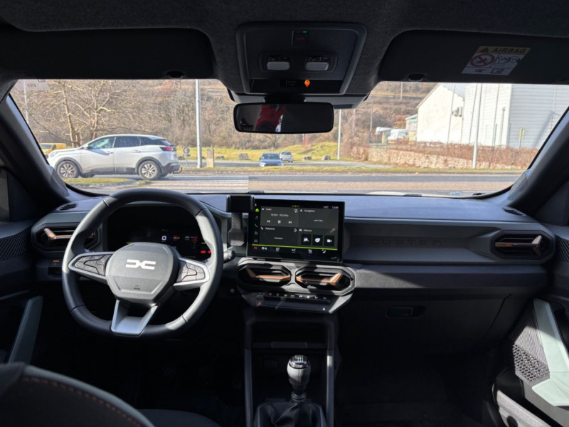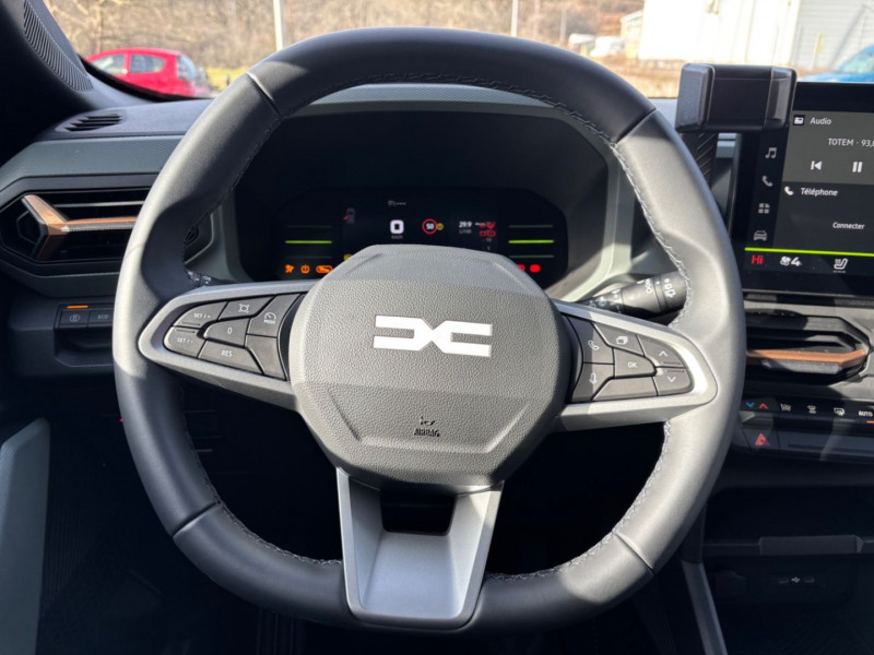 Coques de rétroviseurs Brun Cuivre / Répétiteurs latéraux à LED / Signature lumineuse en "Y" à LED / Sellerie TEP "MicroCloud"avec logo Dacia / Console centrale semi-haute avec accoudoir / Équipement isofix / Commutation automatique feux de croisement/route / Alerte franchissement de ligne et assistant maintien dans la voie / Feux de croisement à LED / voeu / Allumage des feux automatique + Essuie-glace automatique / Tableau de bord numérique 7'' / deux-roues et intersection) / Kit de gonflage / Avertissement distance de sécurité / Appel SOS (E-call) / Système de contrôle de trajectoire (ESC) + aide au démarrage en côte / My Safety Switch (bouton de déconnexion des aides à la conduite) / Media Display (écran 10.1''- Apple Car Play Android Auto) / Barres de toit longitudinales