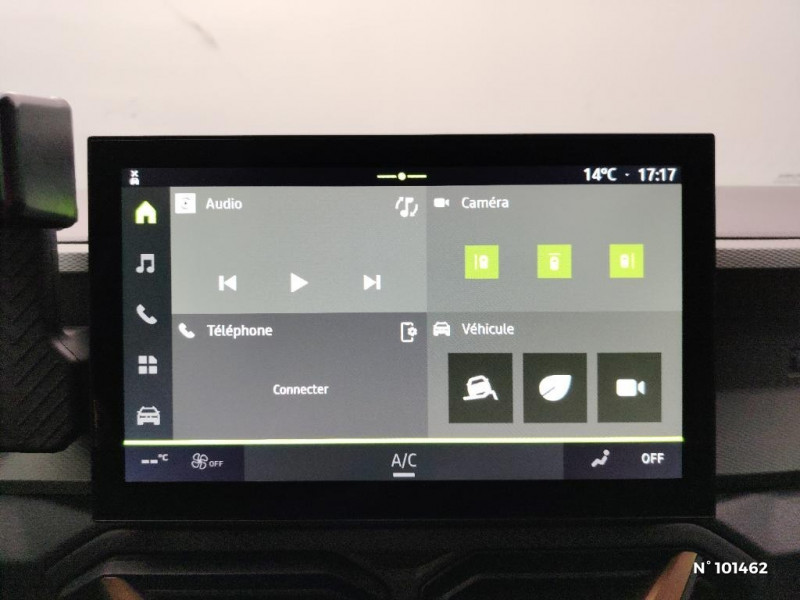 Antenne radio 30cm / Jantes alliage semi-diamantées 17'' TERGAN / Contrôle de trajectoire en descente avancé / Sans rangement coffre / Système de freinage d'urgence avancé (pieton, deux-rorues et intersection) / Système de contrôle de traction (TCS) / Boîte de vitesse manuelle / Feux de croisement à LED / Boucliers ton carosserie / Kit de gonflage / Allumage des feux automatique et essuie-glace automatiques / Commutation automatique feux de croisement/route / Siège passager réglable en hauteur + lombaire conducteur / Appel SOS (E-call) / Avertissement distance de sécurité / Signature lumineuse en "Y" à LED / Répétiteurs latéraux à LED / Alerte franchissement de ligne et assistant maintien dans la voie / Console centrale semi haute avec accoudoir / Ouverture du hayon manuelle / My Safety Switch (bouton de déconnexion des aides à la conduite) / Sellerie TEP "Microcloud"avec logo Dacia réfléchissant / Media Display (écran 10,1'',4 HP, réplication smartphone sans fil, services connectés) / Coques de rétroviseurs Brun Cuivré / Tableau de bord numérique 7"