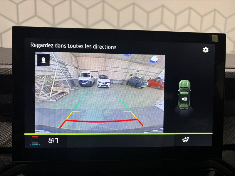 Alerte franchissement de ligne et assistant maintien dans la voie / Allumage des feux automatique et essuie-glace automatiques / Antenne radio 30cm / Appel SOS (E-call) / Avertissement distance de sécurité / Barres de toit longitudinales / Boîte de vitesse automatique 6 / Boucliers ton carosserie / Cléà radiofréquence / Console centrale semi haute avec accoudoir / Coques de rétroviseurs Gris Megalithe / Feux de croisement à LED / Harmonie intérieur Gris mégalithe satiné / Kit de gonflage / Media Display (écran 10,1'',4 HP, réplication smartphone sans fil, services connectés) / My Safety Switch (bouton de déconnexion des aides à la conduite) / Ouverture du hayon manuelle / Répétiteurs latéraux à LED / Sellerie spécifique "Denim" avec logo Dacia réflechissant / Signature lumineuse en "Y" à LED / Système de contrôle de traction (TCS) / Système de contrôle de trajectoire (ESC) et aide au démarrage en côte / Système de freinage d'urgence avancé (piéton, deux-roues et intersection) / Tableau de bord numérique 7"