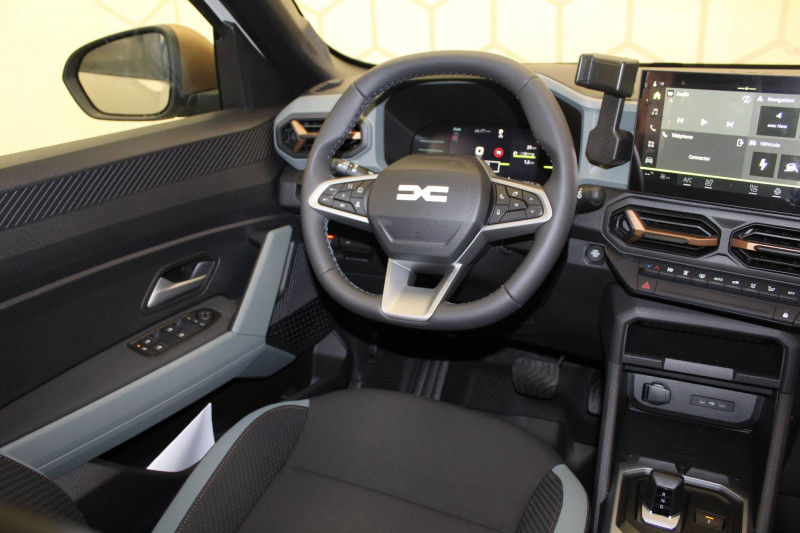Alerte franchissement de ligne et assistant maintien dans la voie / Allumage des feux automatique et essuie-glace automatiques / Antenne radio 30cm / Appel SOS (E-call) / Avertissement distance de sécurité / Boîte de vitesse automatique 6 / Boucliers ton carosserie / Commutation automatique feux de croisement/route / Console centrale semi haute avec accoudoir / Contrôle de trajectoire en descente avancé / Coques de rétroviseurs Brun Cuivré / Feux de croisement à LED / Jantes alliage 17'' TERGAN noires / Kit de gonflage / Media Display (écran 10,1'',4 HP, réplication smartphone sans fil, services connectés) / My Safety Switch (bouton de déconnexion des aides à la conduite) / Ouverture du hayon manuelle / Pneus 4 saisons (3PMSF) / Répétiteurs latéraux à LED / Rétroviseurs extérieurs électriques, dégivrants et rabattable automatiquement / Sellerie TEP "Microcloud"avec logo Dacia / Siège passager réglable en hauteur + lombaire conducteur / Signature lumineuse en "Y" à LED / Système de contrôle de traction (TCS) / Système de freinage d'urgence avancé (piéton, deux-roues et intersection) / Tableau de bord numérique 7"