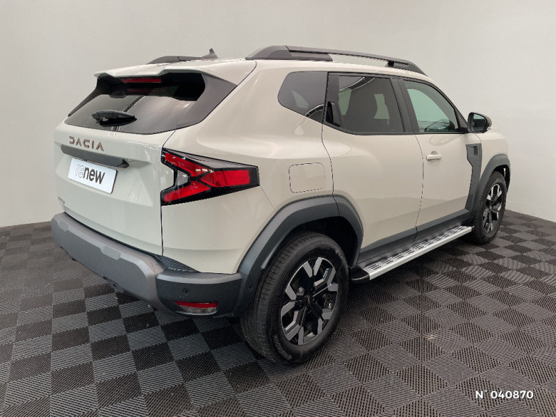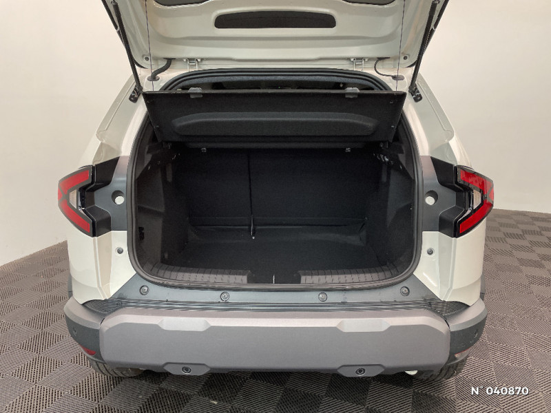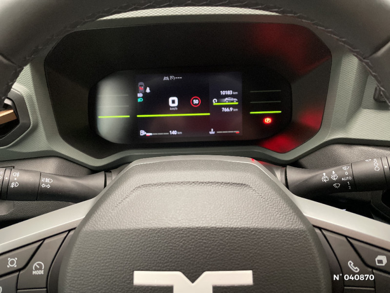Sans rangement coffre / Système de freinage d'urgence avancé (pieton, deux-rorues et intersection) / Système de contrôle de traction (TCS) / Boîte de vitesse manuelle / Antenne radio 30cm / Jantes alliage semi-diamantées 17'' TERGAN / Contrôle de trajectoire en descente avancé / Allumage des feux automatique et essuie-glace automatiques / Commutation automatique feux de croisement/route / Feux de croisement à LED / Siège passager réglable en hauteur + lombaire conducteur / Appel SOS (E-call) / Avertissement distance de sécurité / Signature lumineuse en "Y" à LED / Répétiteurs latéraux à LED / Alerte franchissement de ligne et assistant maintien dans la voie / Console centrale semi haute avec accoudoir / Ouverture du hayon manuelle / My Safety Switch (bouton de déconnexion des aides à la conduite) / Sellerie TEP "Microcloud"avec logo Dacia réfléchissant / Media Display (écran 10,1'',4 HP, réplication smartphone sans fil, services connectés) / Boucliers ton carosserie / Coques de rétroviseurs Brun Cuivré / Tableau de bord numérique 7" / Kit de gonflage