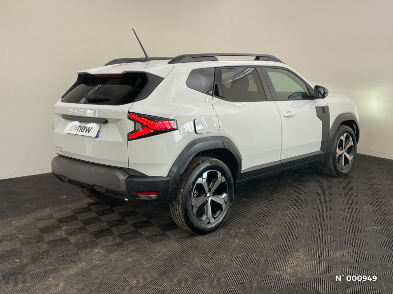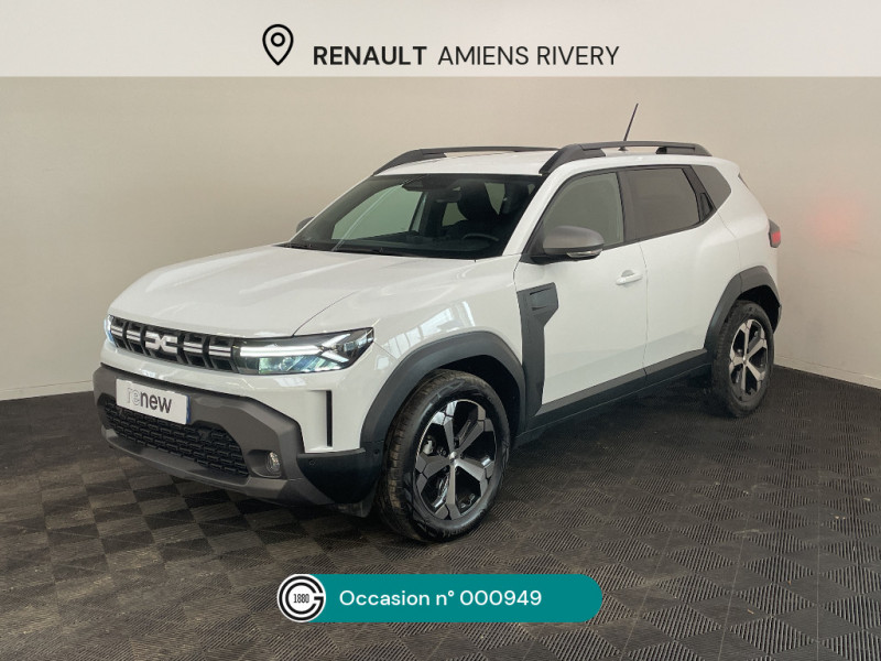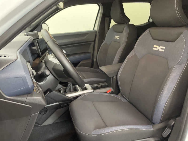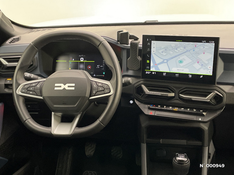 Allumage des feux automatique et essuie-glace automatiques / Commutation automatique feux de croisement/route / Feux de croisement à LED / Appel SOS (E-call) / Avertissement distance de sécurité / Système de contrôle de trajectoire (ESC) et aide au démarrage en côte / Répétiteurs latéraux à LED / Alerte franchissement de ligne et assistant maintien dans la voie / Plancher de coffre plat / Console centrale semi haute avec accoudoir / Ouverture du hayon manuelle / My Safety Switch (bouton de déconnexion des aides à la conduite) / Media Nav Live (écran 10,1'', Navigation avec trafic en temps réel + Système audio 3D Arkamys, 6HP) / Coques de rétroviseurs Gris Megalithe / Tableau de bord numérique 7" / Antenne radio 30cm / Jantes alliage diamantées 18'' TAGASAN / Sellerie spécifique "Denim" avec logo Dacia réflechissant / Système de freinage d'urgence avancé (pieton, deux-rorues et intersection) / Système de contrôle de traction (TCS) / Boîte de vitesse manuelle / Rétroviseurs extérieurs électriques, dégivrants et rabattable automatiquement / Peinture opaque / Signature lumineuse en "Y" à LED / Barres de toit longitudinales / Boucliers ton carosserie / Kit de gonflage