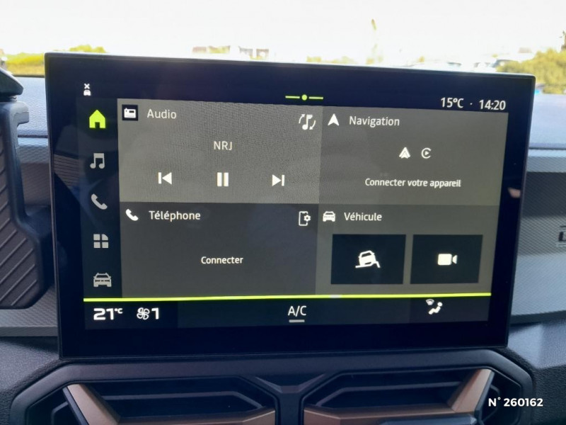 Répétiteurs latéraux à LED / Alerte franchissement de ligne et assistant maintien dans la voie / Console centrale semi haute avec accoudoir / Ouverture du hayon manuelle / My Safety Switch (bouton de déconnexion des aides à la conduite) / Sellerie TEP "Microcloud"avec logo Dacia réfléchissant / Media Display (écran 10,1'',4 HP, réplication smartphone sans fil, services connectés) / Coques de rétroviseurs Brun Cuivré / Tableau de bord numérique 7" / Antenne radio 30cm / Jantes alliage semi-diamantées 17'' TERGAN / Contrôle de trajectoire en descente avancé / Sans rangement coffre / Système de freinage d'urgence avancé (pieton, deux-rorues et intersection) / Système de contrôle de traction (TCS) / Boîte de vitesse manuelle / Boucliers ton carosserie / Kit de gonflage / Allumage des feux automatique et essuie-glace automatiques / Commutation automatique feux de croisement/route / Feux de croisement à LED / Siège passager réglable en hauteur + lombaire conducteur / Appel SOS (E-call) / Avertissement distance de sécurité / Signature lumineuse en "Y" à LED