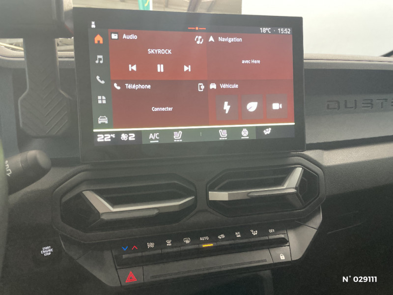 Barres de toit longitudinales / Boucliers ton carosserie / Kit de gonflage / Allumage des feux automatique et essuie-glace automatiques / Media Nav Live (écran 10,1'', Navigation avec trafic en temps réel + Système audio 3D Arkamys, 6HP) / Coques de rétroviseurs Gris Megalithe / Tableau de bord numérique 7" / Antenne radio 30cm / Jantes alliage diamantées 18'' TAGASAN / Sellerie spécifique "Denim" avec logo Dacia réflechissant / Système de freinage d'urgence avancé (pieton, deux-rorues et intersection) / Système de contrôle de traction (TCS) / Boîte de vitesse automatique / Rétroviseurs extérieurs électriques, dégivrants et rabattable automatiquement / Peinture opaque / Commutation automatique feux de croisement/route / Feux de croisement à LED / Appel SOS (E-call) / Avertissement distance de sécurité / Système de contrôle de trajectoire (ESC) et aide au démarrage en côte / Signature lumineuse en "Y" à LED / Répétiteurs latéraux à LED / Alerte franchissement de ligne et assistant maintien dans la voie / Plancher de coffre plat / Console centrale semi haute avec accoudoir / Ouverture du hayon manuelle / My Safety Switch (bouton de déconnexion des aides à la conduite)