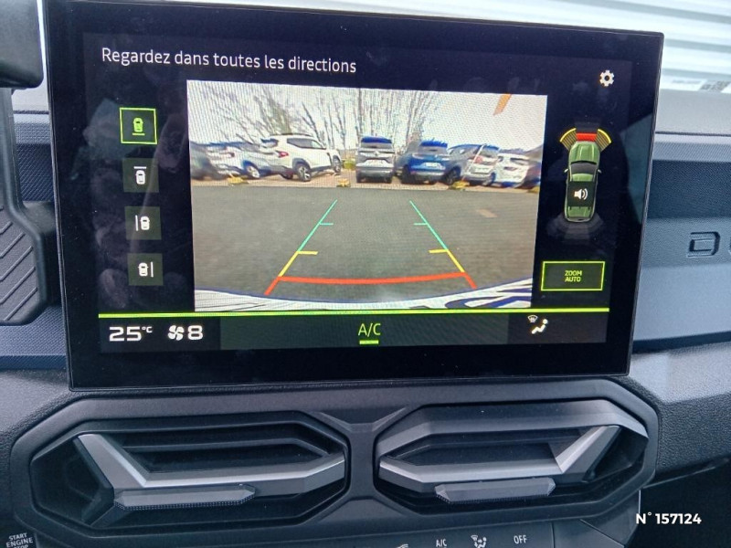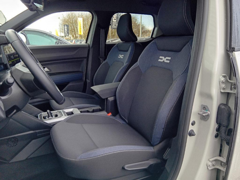Système de contrôle de traction (TCS) / Rétroviseurs extérieurs électriques, dégivrants et rabattable automatiquement / Peinture opaque / Kit de gonflage / Allumage des feux automatique et essuie-glace automatiques / Commutation automatique feux de croisement/route / Feux de croisement à LED / Appel SOS (E-call) / Avertissement distance de sécurité / Système de contrôle de trajectoire (ESC) et aide au démarrage en côte / Signature lumineuse en "Y" à LED / Répétiteurs latéraux à LED / Alerte franchissement de ligne et assistant maintien dans la voie / Plancher de coffre plat / Console centrale semi haute avec accoudoir / Ouverture du hayon manuelle / My Safety Switch (bouton de déconnexion des aides à la conduite) / Media Nav Live (écran 10,1'', Navigation avec trafic en temps réel + Système audio 3D Arkamys, 6HP) / Coques de rétroviseurs Gris Megalithe / Tableau de bord numérique 7" / Antenne radio 30cm / Jantes alliage diamantées 18'' TAGASAN / Sellerie spécifique "Denim" avec logo Dacia réflechissant / Système de freinage d'urgence avancé (pieton, deux-rorues et intersection) / Barres de toit longitudinales / Boucliers ton carosserie / Boîte de vitesse automatique