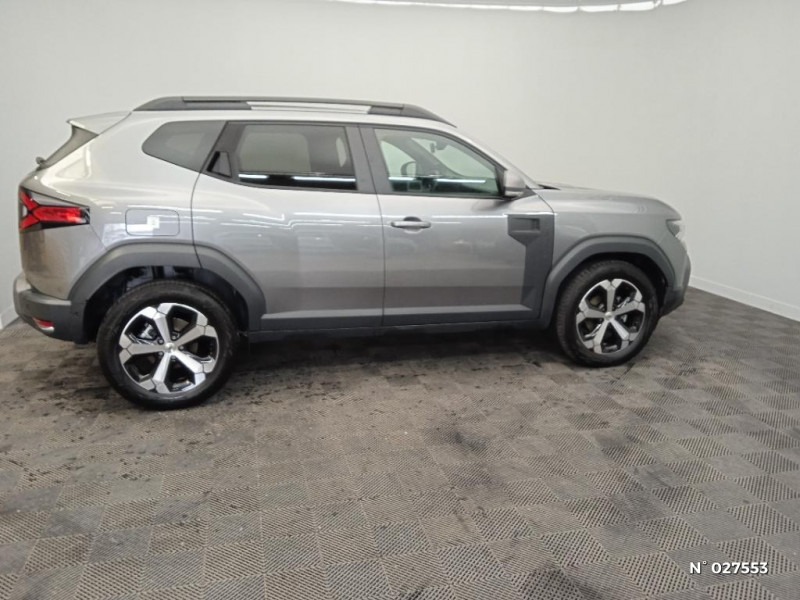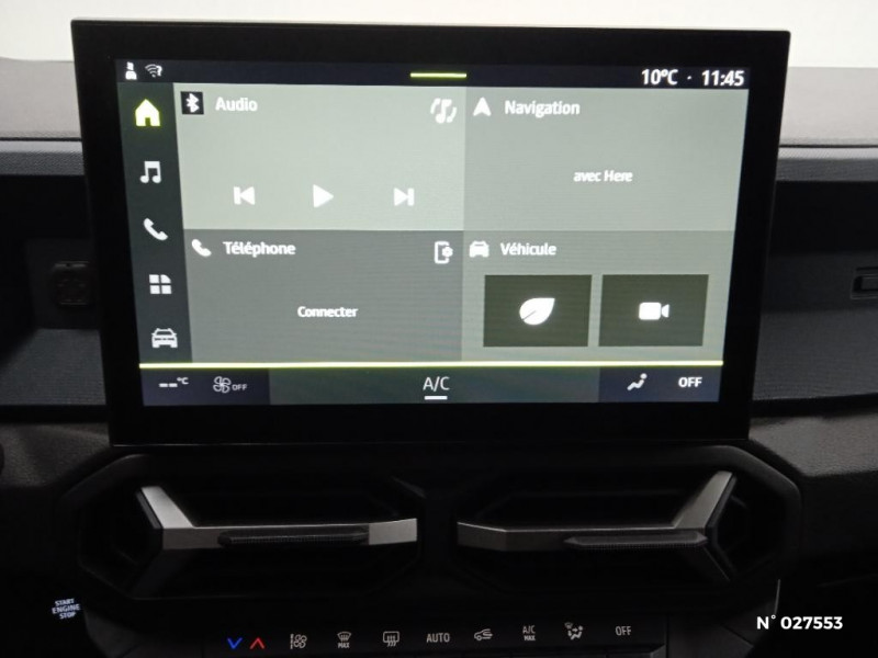 Barres de toit longitudinales / Boucliers ton carosserie / Kit de gonflage / Appel SOS (E-call) / Avertissement distance de sécurité / Système de contrôle de trajectoire (ESC) et aide au démarrage en côte / Allumage des feux automatique et essuie-glace automatiques / Commutation automatique feux de croisement/route / Feux de croisement à LED / Signature lumineuse en "Y" à LED / Répétiteurs latéraux à LED / Alerte franchissement de ligne et assistant maintien dans la voie / Plancher de coffre plat / Console centrale semi haute avec accoudoir / Ouverture du hayon manuelle / My Safety Switch (bouton de déconnexion des aides à la conduite) / Media Nav Live (écran 10,1'', Navigation avec trafic en temps réel + Système audio 3D Arkamys, 6HP) / Coques de rétroviseurs Gris Megalithe / Tableau de bord numérique 7" / Antenne radio 30cm / Jantes alliage diamantées 18'' TAGASAN / Sellerie spécifique "Denim" avec logo Dacia réflechissant / Système de freinage d'urgence avancé (pieton, deux-rorues et intersection) / Système de contrôle de traction (TCS) / Boîte de vitesse manuelle / Rétroviseurs extérieurs électriques, dégivrants et rabattable automatiquement