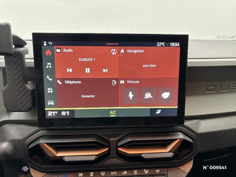 Boîte de vitesse automatique 4 / Boîte de vitesse automatique 6 / Boucliers ton carosserie / Commutation automatique feux de croisement/route / Console centrale semi haute avec accoudoir / Contrôle de trajectoire en descente avancé / Coques de rétroviseurs Brun Cuivré / Feux de croisement à LED / Jantes alliage semi-diamantées 17'' TERGAN / Kit de gonflage / Media Display (écran 10,1'',4 HP, réplication smartphone sans fil, services connectés) / My Safety Switch (bouton de déconnexion des aides à la conduite) / Ouverture du hayon manuelle / Peinture opaque / Répétiteurs latéraux à LED / Rétroviseurs extérieurs électriques, dégivrants et rabattable automatiquement / Sans rangement coffre / Sellerie TEP "Microcloud"avec logo Dacia / Siège passager réglable en hauteur + lombaire conducteur / Signature lumineuse en "Y" à LED / Système de contrôle de traction (TCS) / Système de freinage d'urgence avancé (pieton, deux-rorues et intersection) / Système de freinage d'urgence avancé (piéton, deux-roues et intersection) / Tableau de bord numérique 7" / Alerte franchissement de ligne et assistant maintien dans la voie / Allumage des feux automatique et essuie-glace automatiques / Antenne radio 30cm / Appel SOS (E-call) / Avertissement distance de sécurité