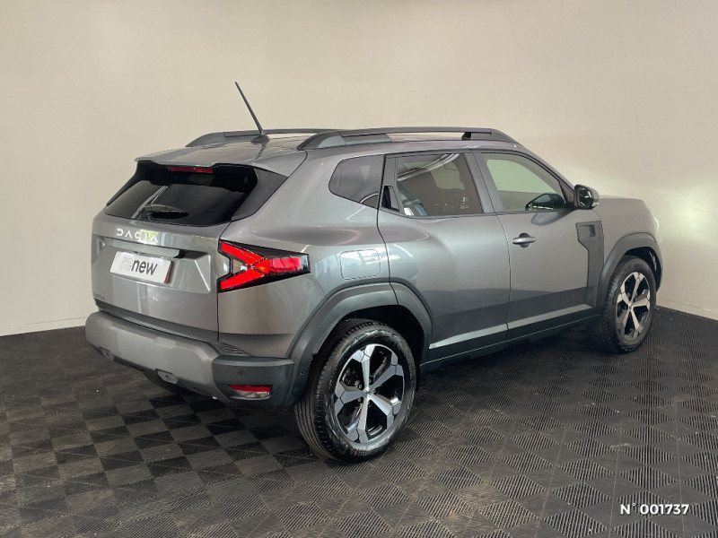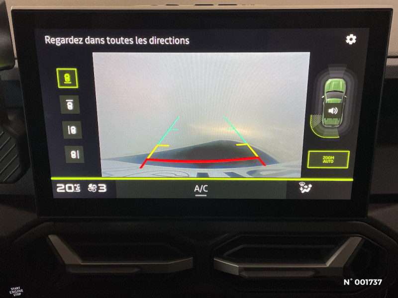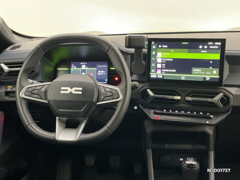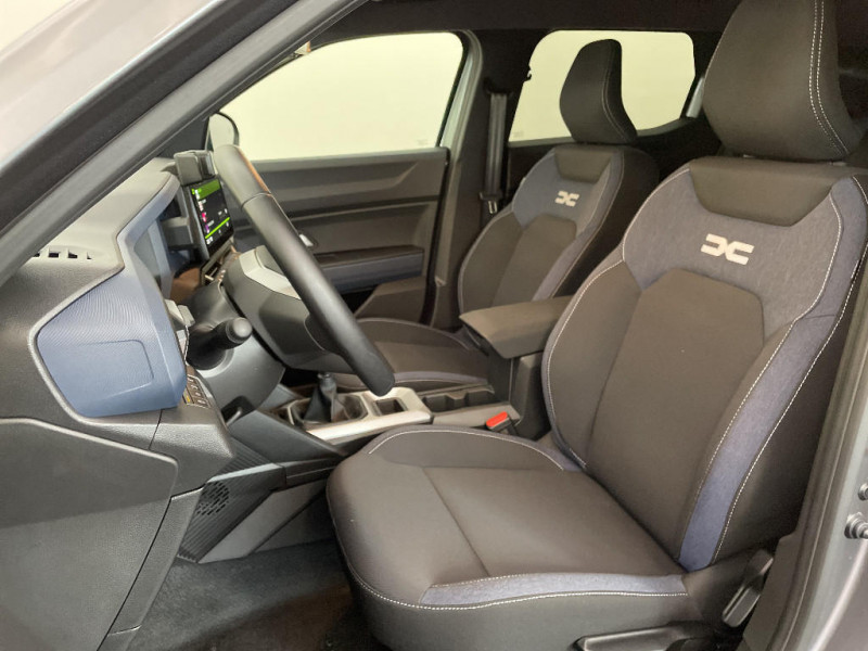 Sellerie spécifique "Denim" avec logo Dacia réflechissant / Système de freinage d'urgence avancé (pieton, deux-rorues et intersection) / Système de contrôle de traction (TCS) / Boîte de vitesse manuelle / Signature lumineuse en "Y" à LED / Répétiteurs latéraux à LED / Alerte franchissement de ligne et assistant maintien dans la voie / Plancher de coffre plat / Console centrale semi haute avec accoudoir / Ouverture du hayon manuelle / My Safety Switch (bouton de déconnexion des aides à la conduite) / Media Nav Live (écran 10,1'', Navigation avec trafic en temps réel + Système audio 3D Arkamys, 6HP) / Coques de rétroviseurs Gris Megalithe / Tableau de bord numérique 7" / Antenne radio 30cm / Jantes alliage diamantées 18'' TAGASAN / Barres de toit longitudinales / Boucliers ton carosserie / Kit de gonflage / Allumage des feux automatique et essuie-glace automatiques / Commutation automatique feux de croisement/route / Feux de croisement à LED / Appel SOS (E-call) / Avertissement distance de sécurité / Système de contrôle de trajectoire (ESC) et aide au démarrage en côte / Rétroviseurs extérieurs électriques, dégivrants et rabattable automatiquement