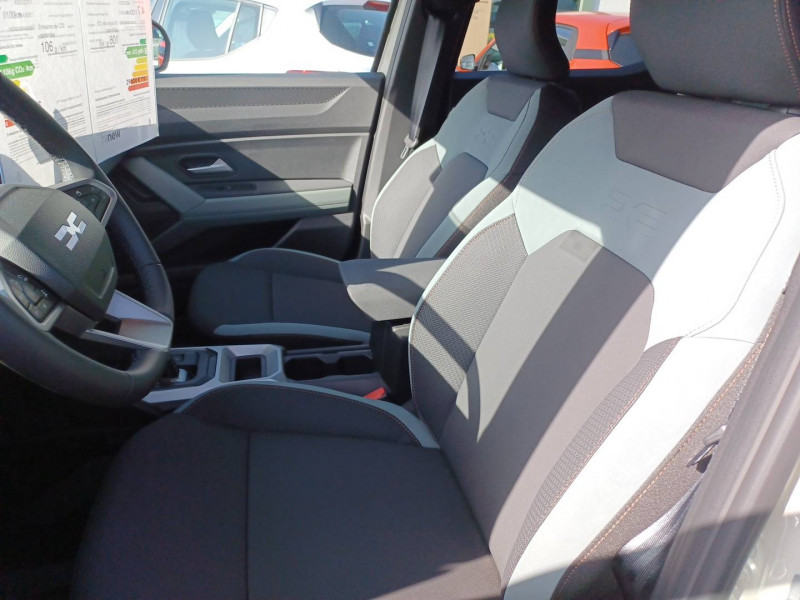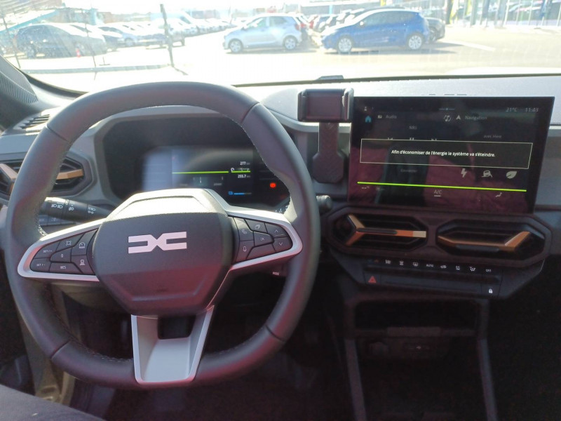Alerte franchissement de ligne et assistant maintien dans la voie / Allumage des feux automatique et essuie-glace automatiques / Antenne radio 30cm / Appel SOS (E-call) / Avertissement distance de sécurité / Boîte de vitesse automatique 6 / Boucliers ton carosserie / Commutation automatique feux de croisement/route / Console centrale semi haute avec accoudoir / Contrôle de trajectoire en descente avancé / Coques de rétroviseurs Brun Cuivré / Feux de croisement à LED / Jantes alliage 17'' TERGAN noires / Kit de gonflage / Media Display (écran 10,1'',4 HP, réplication smartphone sans fil, services connectés) / My Safety Switch (bouton de déconnexion des aides à la conduite) / Ouverture du hayon manuelle / Répétiteurs latéraux à LED / Rétroviseurs extérieurs électriques, dégivrants et rabattable automatiquement / Sellerie TEP "Microcloud"avec logo Dacia / Siège passager réglable en hauteur + lombaire conducteur / Signature lumineuse en "Y" à LED / Système de contrôle de traction (TCS) / Système de freinage d'urgence avancé (piéton, deux-roues et intersection) / Tableau de bord numérique 7"