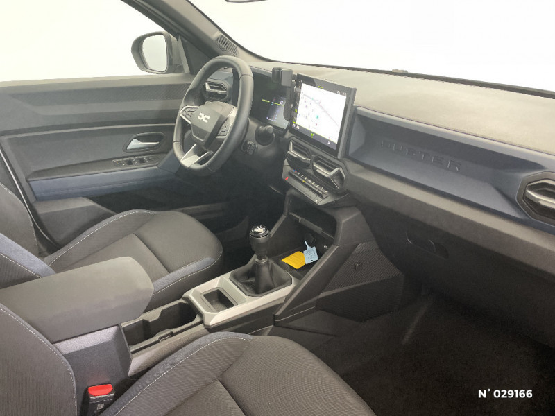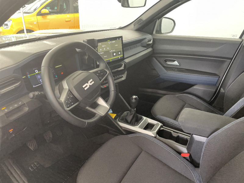 Console centrale semi haute avec accoudoir / Ouverture du hayon manuelle / Barres de toit longitudinales / Boucliers ton carosserie / Kit de gonflage / Allumage des feux automatique et essuie-glace automatiques / Commutation automatique feux de croisement/route / Feux de croisement à LED / Appel SOS (E-call) / Avertissement distance de sécurité / Système de contrôle de trajectoire (ESC) et aide au démarrage en côte / Signature lumineuse en "Y" à LED / Répétiteurs latéraux à LED / Alerte franchissement de ligne et assistant maintien dans la voie / Rétroviseurs extérieurs électriques, dégivrants et rabattable automatiquement / Peinture opaque / My Safety Switch (bouton de déconnexion des aides à la conduite) / Media Nav Live (écran 10,1'', Navigation avec trafic en temps réel + Système audio 3D Arkamys, 6HP) / Coques de rétroviseurs Gris Megalithe / Tableau de bord numérique 7" / Antenne radio 30cm / Jantes alliage diamantées 18'' TAGASAN / Sellerie spécifique "Denim" avec logo Dacia réflechissant / Système de freinage d'urgence avancé (pieton, deux-rorues et intersection) / Système de contrôle de traction (TCS) / Boîte de vitesse manuelle / Plancher de coffre plat