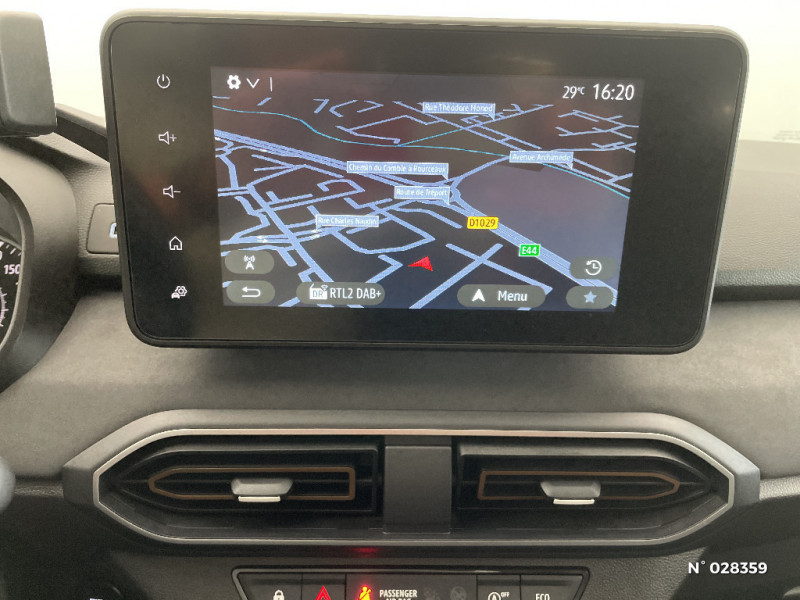Cluster TFT / Volant Soft Feel TEP / Cartographie Europe de l'Ouest / Eclairage du coffre / Kit de gonflage / Airbag latéral avant : thorax + rideau / Feux arrières avec signature lumineuse Y / Signature lumineuse DACIA en Y à LED / Rappel de bouclage de ceintures / Eclairage plafonnier AR / Banquette AR avec dossier rabattable en portefeuille 1/3 -2/3 / Media NAV (écran 8'' avec réplication, navigation, 6 haut-parleurs, 2 USB) / Console semi-haute + rangement fermé avec accoudoir / Prise accessoire en rang 3 / Système de freinage d'urgence autonome à des vitesses interurbaines 7-170km/h / Mise à jour gratuite pendant 3 ans de la cartographie / Enjoliveurs bas de porte coffre / Stripping Extreme / Jantes alliage 16'' MAHALIA noires avec cabochon Brun Cuivré / Extended Grip / Sellerie spécifique Extreme avec surpiqures Brun Cuivré / Vitres, portes AR, custode et lunette arrière surteintées