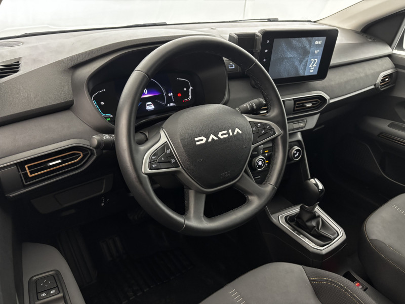 Airbag latéral AV : thorax + rideau / Banquette AR avec dossier rabattable en portefeuille 1/3 -2/3 / Cluster couleur TFT 7'' / Console semi-haute + rangement fermé avec accoudoir / Eclairage du coffre / Eclairage plafonnier AR / Enjoliveurs bas de porte coffre / Extended Grip / Feux AR avec signature lumineuse Y / Jantes alliage 16'' MAHALIA noires avec cabochon Brun Cuivré / Kit de gonflage / Media display (écran 8'', réplication smartphone, 4 haut-parleurs, 1 port USB) / Rappel de bouclage de ceintures / Sellerie spécifique Extreme avec surpiqûres Brun Cuivré / Signature lumineuse DACIA en Y à LED / Stripping Extreme / Système de freinage d'urgence autonome à des vitesses interurbaines 7-170km/h / Vitres, portes AR, custode et lunette AR surteintées / Volant Soft Feel TEP /