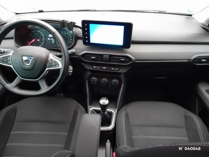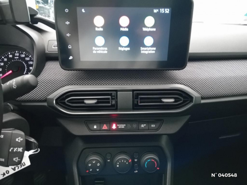 Banquette AR avec dossier rabattable en portefeuille 1/3 -2/3 / Enjoliveurs FLEX WHEEL 16'' SARIA / Media display (écran 8'', réplication smartphone, 4 haut-parleurs, 1 port USB) / Classes énergetiques B / Système de freinage d'urgence autonome à des vitesses interurbaines 7-170km/h / Volant Soft Feel TEP / Airbag latéral avant : thorax + rideau / Signature lumineuse DACIA en Y à LED / Vitres, portes AR, custode et lunette arrière surteintées / Système de contrôle de trajectoire (ESC) et aide au démarrage en côte / Bicarburation Essence / GPL / Console basse + rangement ouvert / Harmonie intérieur / Sellerie confort avec surpiqures / Peinture opaque