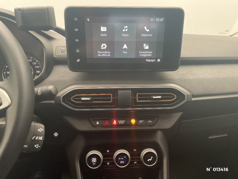 Signature lumineuse DACIA en Y à LED / Console semi-haute + rangement fermé avec accoudoir / Prise accessoire en rang 3 / Système de freinage d'urgence autonome à des vitesses interurbaines 7-170km/h / Mise à jour gratuite pendant 3 ans de la cartographie / Enjoliveurs bas de porte coffre / Stripping Extreme / Jantes 16'' MAHALIA diamantée noir avec cabochon Brun Cuivré / Extended Grip / Sellerie spécifique Extreme avec surpiqures Brun Cuivré / Vitres, portes AR, custode et lunette arrière surteintées / Cluster TFT / Volant Soft Feel TEP / Cartographie Europe de l'Ouest / Airbag latéral avant : thorax + rideau / Feux arrières avec signature lumineuse Y / Rappel de bouclage de ceintures / Eclairage plafonnier AR / Banquette AR avec dossier rabattable en portefeuille 1/3 -2/3 / Media NAV (écran 8'' avec réplication, navigation, 6 haut-parleurs, 2 USB) / Eclairage du coffre / Kit de gonflage