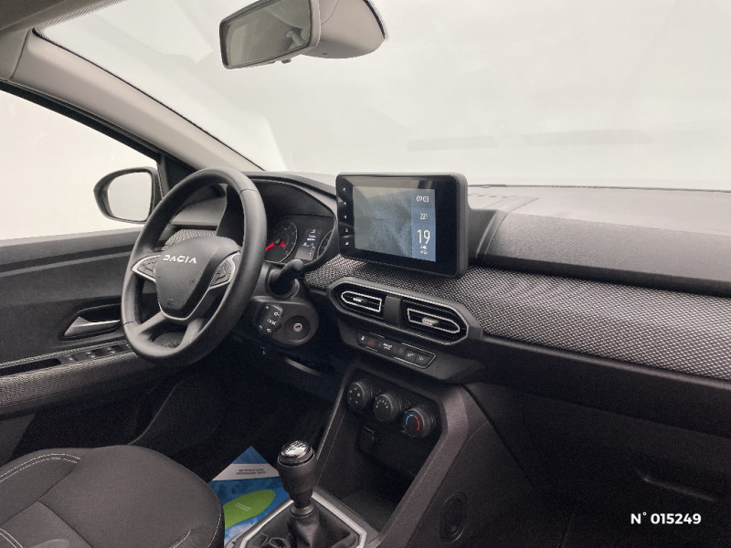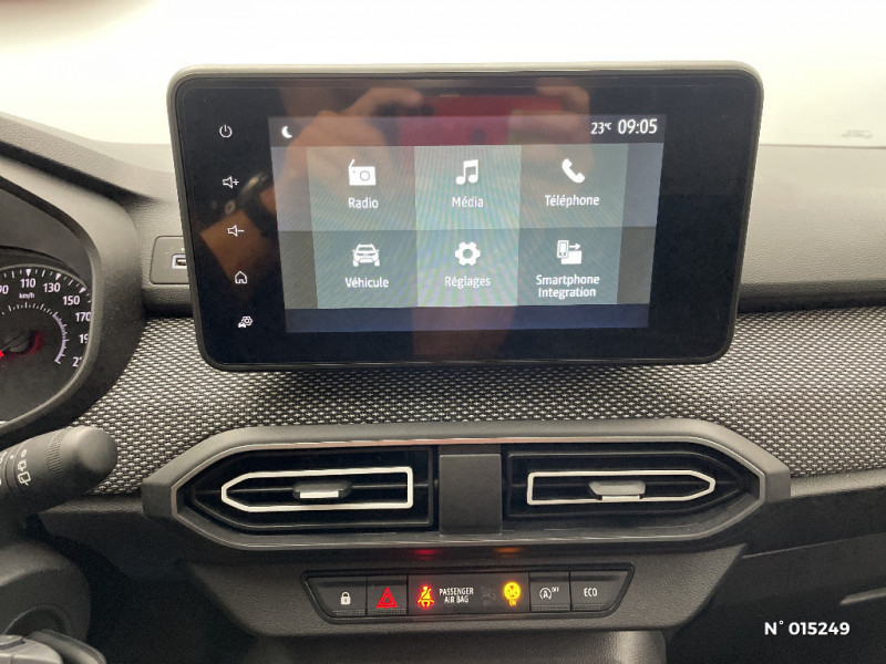 Cluster TFT / Harmonie intérieur / Sellerie confort avec surpiqures / Volant Soft Feel TEP / Airbag latéral avant : thorax + rideau / Signature lumineuse DACIA en Y à LED / Rappel de bouclage de ceintures / Eclairage plafonnier AR / Banquette AR avec dossier rabattable en portefeuille 1/3 -2/3 / Prise accessoire en rang 3 / Media display (écran 8'', réplication smartphone, 4 haut-parleurs, 1 port USB) / Tapis de coffre / Système de freinage d'urgence autonome à des vitesses interurbaines 7-170km/h / Enjoliveurs FLEX WHEEL 16'' SARIA / Roues tole 16'' / Enjoliveurs bas de porte coffre / Classe energetique 1 / Eclairage du coffre / Kit de gonflage / Peinture opaque / Vitres, portes AR, custode et lunette arrière surteintées / Système de contrôle de trajectoire (ESC) et aide au démarrage en côte / Clé 3 boutons