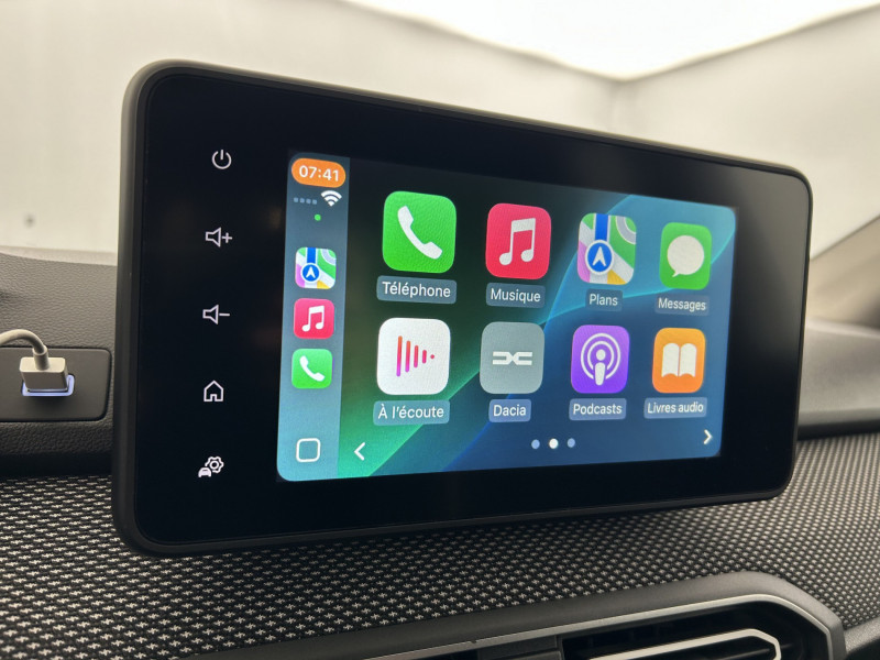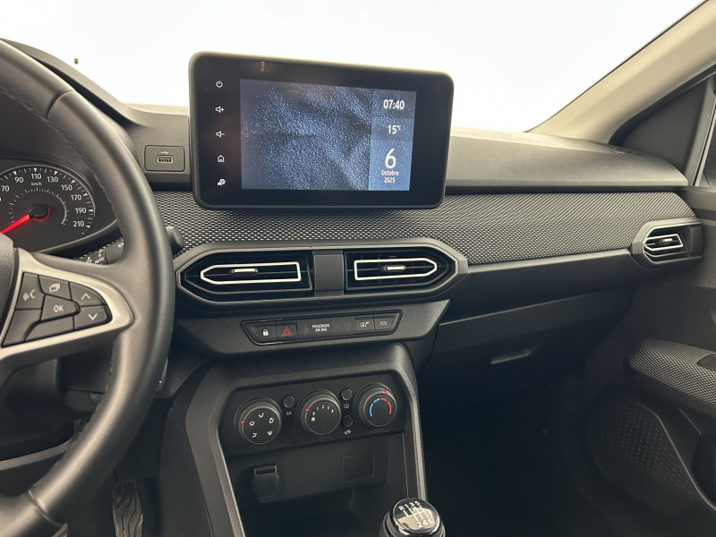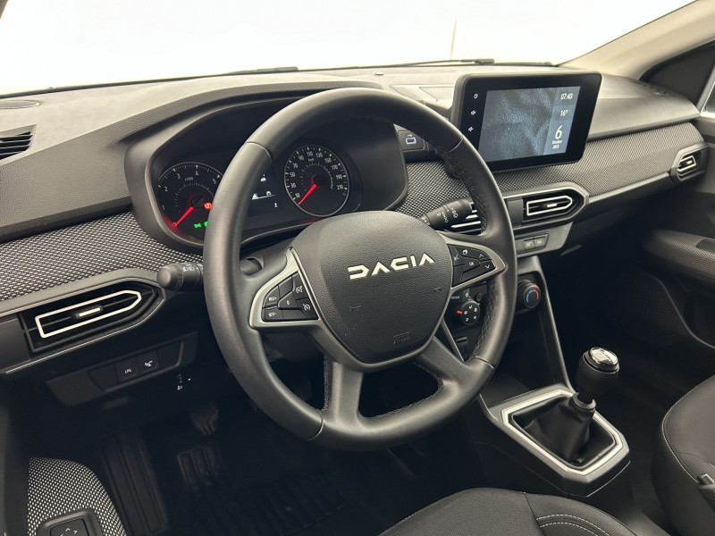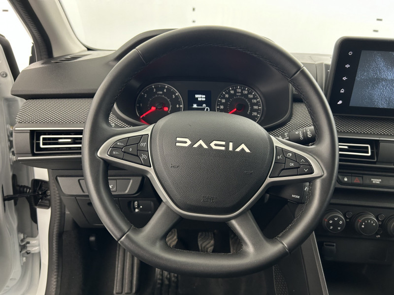 Airbag latéral AV : thorax + rideau / Banquette AR avec dossier rabattable en portefeuille 1/3 -2/3 / Clé 3 boutons / Cluster TFT / Console basse + rangement ouvert / Eclairage du coffre / Eclairage plafonnier AR / Enjoliveur 16'' Saria / Enjoliveurs bas de porte coffre / Kit de gonflage / Media display (écran 8'', réplication smartphone, 4 haut-parleurs, 1 port USB) / Prise accessoire en rang 3 / Rappel de bouclage de ceintures / Sellerie avec surpiqures grises / Signature lumineuse DACIA en Y à LED / Système de contrôle de trajectoire (ESC) et aide au démarrage en côte / Système de freinage d'urgence autonome à des vitesses interurbaines 7-170km/h / Vitres, portes AR, custode et lunette AR surteintées / Volant Soft Feel TEP /