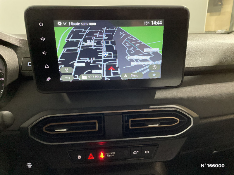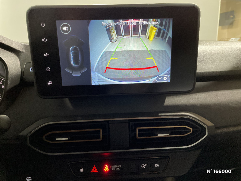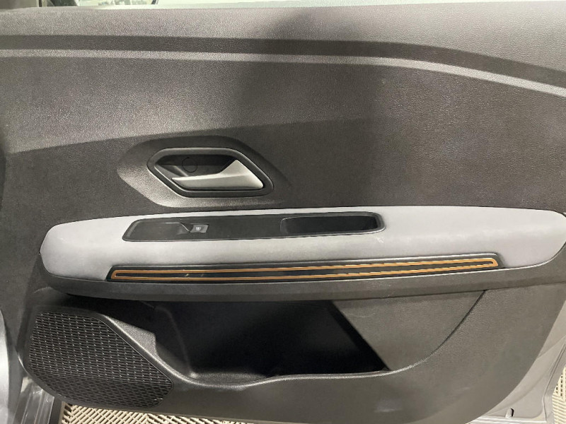 Eclairage du coffre / Kit de gonflage / Vitres, portes AR, custode et lunette arrière surteintées / Cluster TFT / Volant Soft Feel TEP / Cartographie Europe de l'Ouest / Airbag latéral avant : thorax + rideau / Feux arrières avec signature lumineuse Y / Signature lumineuse DACIA en Y à LED / Rappel de bouclage de ceintures / Eclairage plafonnier AR / Banquette AR avec dossier rabattable en portefeuille 1/3 -2/3 / Media NAV (écran 8'' avec réplication, navigation, 6 haut-parleurs, 2 USB) / Console semi-haute + rangement fermé avec accoudoir / Prise accessoire en rang 3 / Tapis de coffre / Système de freinage d'urgence autonome à des vitesses interurbaines 7-170km/h / Mise à jour gratuite pendant 3 ans de la cartographie / Enjoliveurs bas de porte coffre / Stripping Extreme / Jantes alliage 16'' MAHALIA noires avec cabochon Brun Cuivré / Extended Grip / Sellerie spécifique Extreme avec surpiqures Brun Cuivré