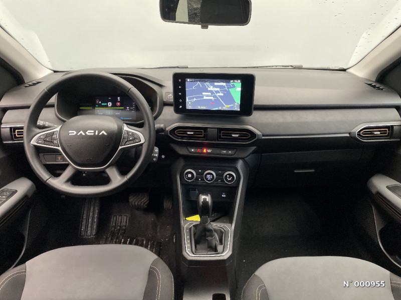 Airbag latéral AV : thorax + rideau / Sellerie avec surpiqures grises / Signature lumineuse DACIA en Y à LED / Système de contrôle de traction (TCS) / Système de contrôle de trajectoire (ESC) et aide au démarrage en côte / Système de freinage d'urgence avancé (pieton, deux-rorues et intersection) / Vitres, portes AR, custode et lunette AR surteintées / Volant Soft Feel TEP / Alerte franchissement de ligne et assistant maintien dans la voie / Banquette AR avec dossier rabattable en portefeuille 1/3 -2/3 / Boîte de vitesse automatique 4 / Boîte de vitesse hybride multimode / Clé 3 boutons / Cluster couleur TFT 7'' / Console semi-haute + rangement fermé avec accoudoir / Eclairage du coffre / Eclairage plafonnier AR / Enjoliveur 16'' ATARA / Enjoliveur 16'' ATARA DARK / Enjoliveurs bas de porte coffre / Kit de gonflage / Media display (écran 8'', réplication smartphone, 4 haut-parleurs, 1 port USB) / Peinture opaque / Prédisposition Ethylotest / Prise accessoire en rang 3 / Rappel de bouclage de ceintures