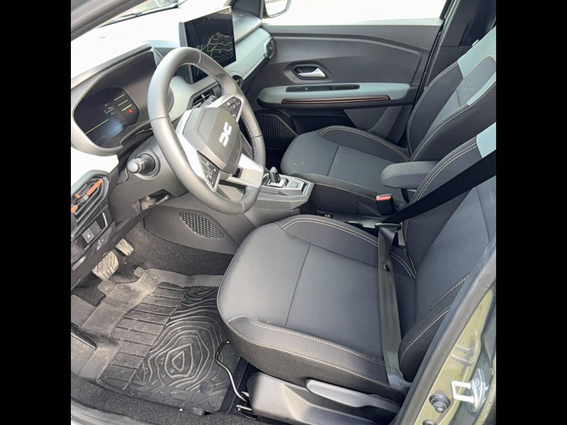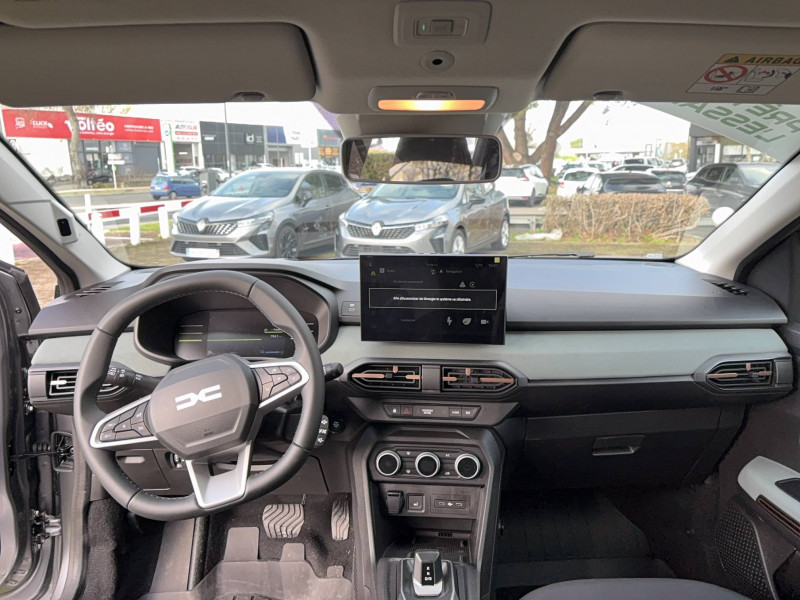 Airbag latéral AV : thorax + rideau / Alerte franchissement de ligne et assistant maintien dans la voie / Antenne requin / Appel SOS (E-call) / Banquette AR avec dossier rabattable en portefeuille 1/3 -2/3 / Boîte de vitesse automatique 6 / Cluster couleur TFT 7'' / Console semi-haute + rangement fermé avec accoudoir / Eclairage du coffre / Eclairage plafonnier AR / Enjoliveurs bas de porte coffre / ESC / Extended Grip / Feux AR avec signature lumineuse Y / Jantes en alliage 16'' TAMIA noires / Kit de gonflage / Nouveau Media Display / Prédisposition Ethylotest / Rappel de bouclage de ceintures / Sellerie TEP Microcloud / Signature lumineuse DACIA en Y à LED / Système de contrôle de traction (TCS) / Vitres portes AR/custode/lunette AR surteintées / Volant Soft Feel TEP