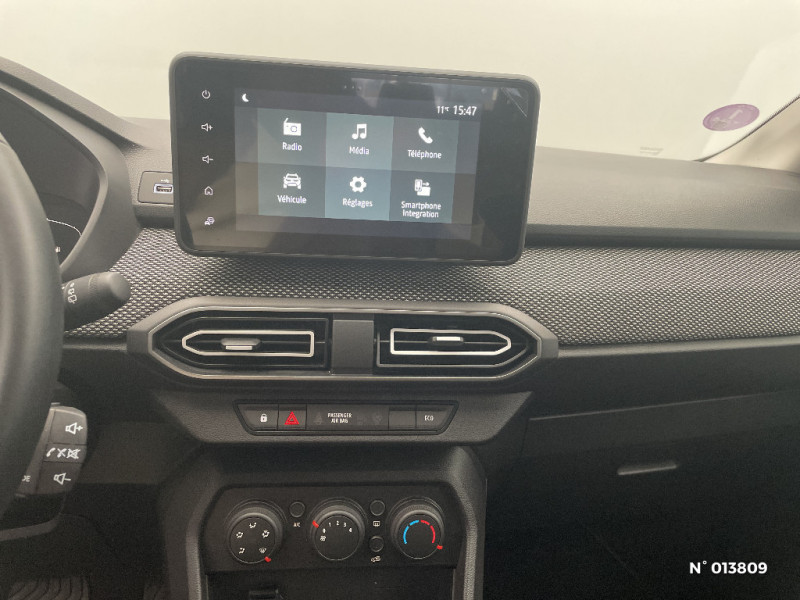 Signature lumineuse DACIA en Y à LED / Peinture opaque / Eclairage du coffre / Kit de gonflage / Vitres, portes AR, custode et lunette arrière surteintées / Système de contrôle de trajectoire (ESC) et aide au démarrage en côte / Clé 3 boutons / Harmonie intérieur / Sellerie Confort avec surpiqures / Volant Soft Feel TEP / Rappel de bouclage de ceintures / Eclairage plafonnier AR / Banquette AR avec dossier rabattable en portefeuille 1/3 -2/3 / Console semi-haute + rangement fermé avec accoudoir / Media display (écran 8'', réplication smartphone, 4 haut-parleurs, 1 port USB) / Tapis de coffre / Système de freinage d'urgence autonome à des vitesses interurbaines 7-170km/h / Airbag latéral avant : thorax + rideau / Enjoliveurs FLEX WHEEL 16'' SARIA / Roues tole 16'' / Enjoliveurs bas de porte coffre / Classe energetique 1 / Cluster couleur TFT 7''