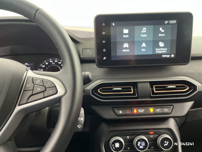 Banquette AR avec dossier rabattable en portefeuille 1/3 -2/3 / Prise accessoire en rang 3 / Media display (écran 8'', réplication smartphone, 4 haut-parleurs, 1 port USB) / Enjoliveurs bas de porte coffre / Stripping Extreme / Extended Grip / Sellerie spécifique Extreme avec surpiqures Brun Cuivré / Système de freinage d'urgence avancé (pieton, deux-rorues et intersection) / Prédisposition Ethylotest / Alerte franchissement de ligne et assistant maintien dans la voie / Jantes alliage 16'' MAHALIA diamantée noir avec cabochon Brun Cuivré / Système de contrôle de traction (TCS) / Boîte de vitesse manuelle / Peinture opaque / Eclairage du coffre / Kit de gonflage / Vitres, portes AR, custode et lunette arrière surteintées / Console basse + rangement ouvert / Cluster TFT / Volant Soft Feel TEP / Airbag latéral avant : thorax + rideau / Feux arrières avec signature lumineuse Y / Signature lumineuse DACIA en Y à LED / Rappel de bouclage de ceintures / Eclairage plafonnier AR
