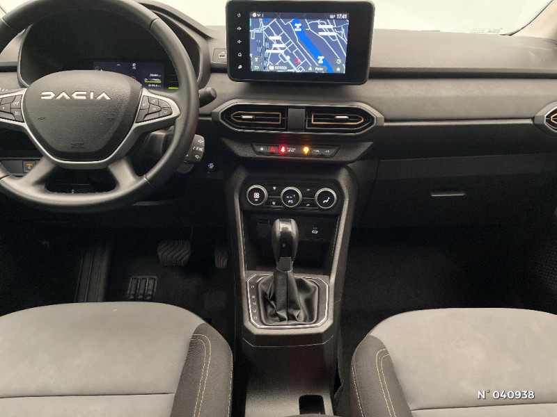 Signature lumineuse DACIA en Y à LED / Rappel de bouclage de ceintures / Eclairage plafonnier AR / Banquette AR avec dossier rabattable en portefeuille 1/3 -2/3 / Eclairage du coffre / Kit de gonflage / Vitres, portes AR, custode et lunette arrière surteintées / Volant Soft Feel TEP / Prédisposition Ethylotest / Alerte franchissement de ligne et assistant maintien dans la voie / Jantes alliage 16'' MAHALIA diamantée noir avec cabochon Brun Cuivré / Système de contrôle de traction (TCS) / Boîte de vitesse automatique / Peinture opaque / Airbag latéral avant : thorax + rideau / Feux arrières avec signature lumineuse Y / Console semi-haute + rangement fermé avec accoudoir / Prise accessoire en rang 3 / Media display (écran 8'', réplication smartphone, 4 haut-parleurs, 1 port USB) / Enjoliveurs bas de porte coffre / Cluster couleur TFT 7'' / Stripping Extreme / Extended Grip / Sellerie spécifique Extreme avec surpiqures Brun Cuivré / Système de freinage d'urgence avancé (pieton, deux-rorues et intersection)