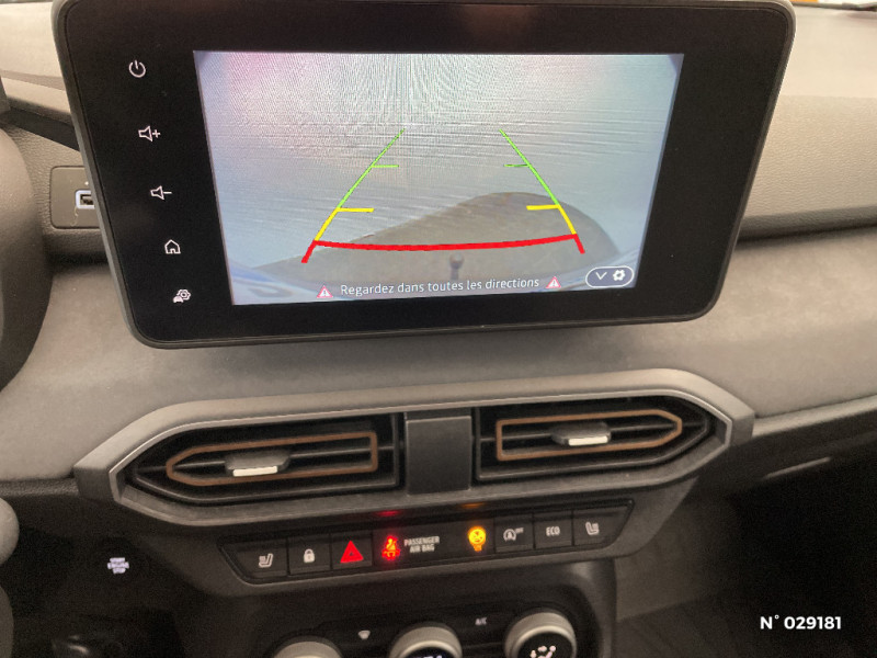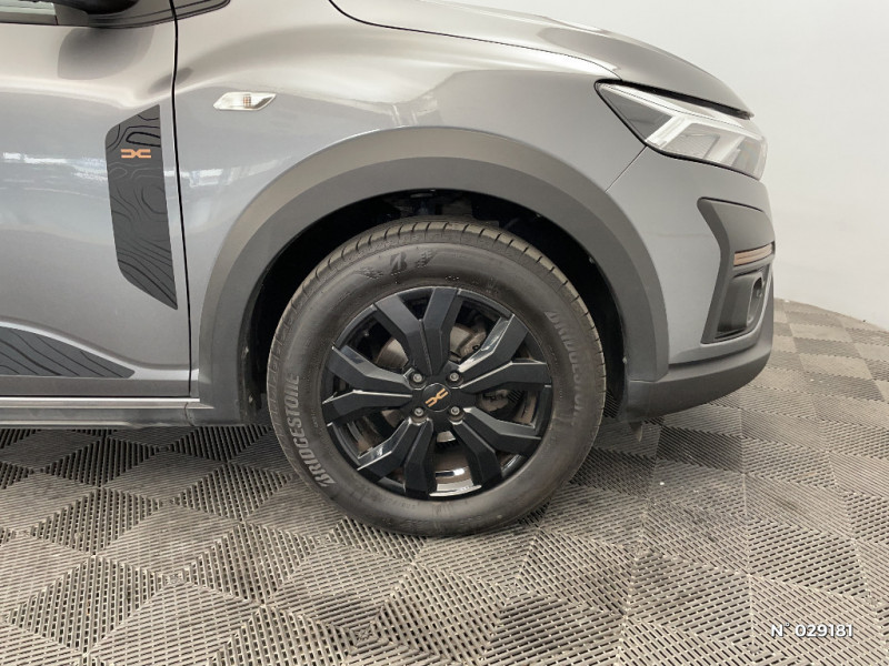 Airbag latéral avant : thorax + rideau / Feux arrières avec signature lumineuse Y / Signature lumineuse DACIA en Y à LED / Rappel de bouclage de ceintures / Eclairage plafonnier AR / Banquette AR avec dossier rabattable en portefeuille 1/3 -2/3 / Media display (écran 8'', réplication smartphone, 4 haut-parleurs, 1 port USB) / Eclairage du coffre / Kit de gonflage / Vitres, portes AR, custode et lunette arrière surteintées / Console basse + rangement ouvert / Cluster TFT / Volant Soft Feel TEP / Tapis de coffre / Système de freinage d'urgence autonome à des vitesses interurbaines 7-170km/h / Enjoliveurs bas de porte coffre / Stripping Extreme / Jantes alliage 16'' MAHALIA noires avec cabochon Brun Cuivré / Extended Grip / Sellerie spécifique Extreme avec surpiqures Brun Cuivré
