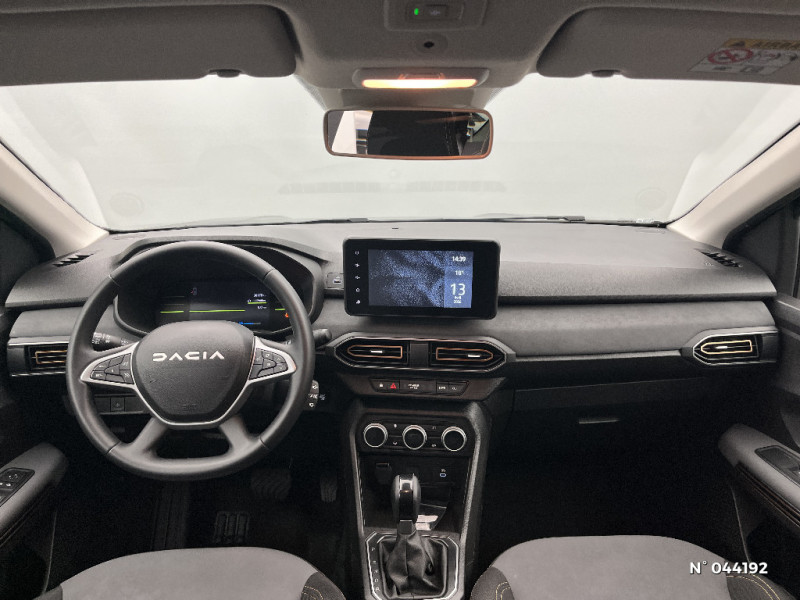 Cluster couleur TFT 7'' / Stripping Extreme / Extended Grip / Sellerie spécifique Extreme avec surpiqures Brun Cuivré / Système de freinage d'urgence avancé (pieton, deux-rorues et intersection) / Prédisposition Ethylotest / Alerte franchissement de ligne et assistant maintien dans la voie / Jantes alliage 16'' MAHALIA diamantée noir avec cabochon Brun Cuivré / Système de contrôle de traction (TCS) / Boîte de vitesse automatique / Peinture opaque / Eclairage du coffre / Kit de gonflage / Vitres, portes AR, custode et lunette arrière surteintées / Volant Soft Feel TEP / Airbag latéral avant : thorax + rideau / Feux arrières avec signature lumineuse Y / Signature lumineuse DACIA en Y à LED / Rappel de bouclage de ceintures / Eclairage plafonnier AR / Banquette AR avec dossier rabattable en portefeuille 1/3 -2/3 / Console semi-haute + rangement fermé avec accoudoir / Prise accessoire en rang 3 / Media display (écran 8'', réplication smartphone, 4 haut-parleurs, 1 port USB) / Enjoliveurs bas de porte coffre