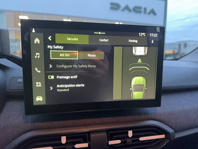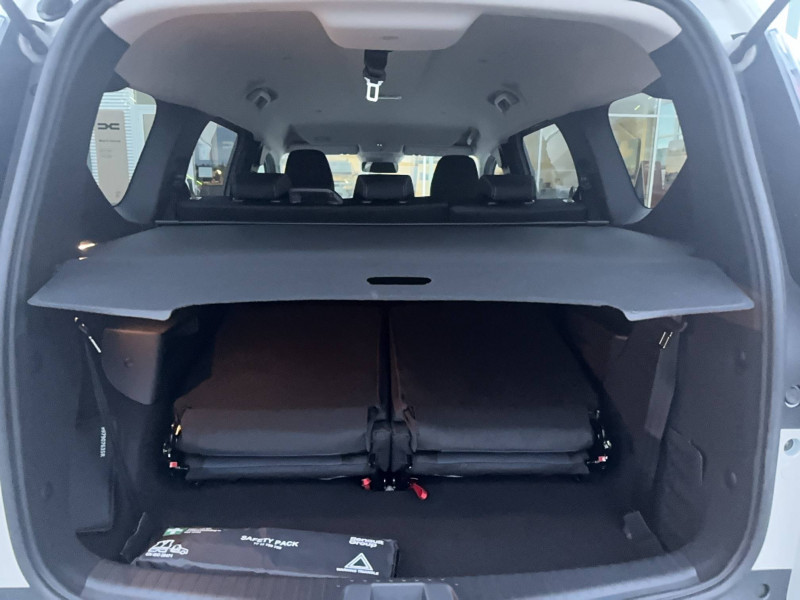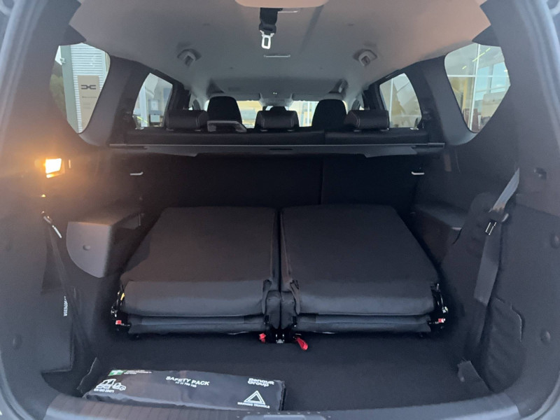 Airbag latéral AV : thorax + rideau / Alerte franchissement de ligne et assistant maintien dans la voie / Antenne requin / Appel SOS (E-call) / Banquette AR avec dossier rabattable en portefeuille 1/3 -2/3 / Boîte de vitesse automatique 6 / Cluster couleur TFT 7'' / Console semi-haute + rangement fermé avec accoudoir / Eclairage du coffre / Eclairage plafonnier AR / Enjoliveurs bas de porte coffre / Feux AR avec signature lumineuse Y / Kit de gonflage / Nouvelle Sellerie spécifique journey / Pack Navigation : Media Nav Live + Son Arkamys 6HP / Prédisposition Ethylotest / Prise accessoire en rang 3 / Rappel de bouclage de ceintures / Signature lumineuse DACIA en Y à LED / Système de contrôle de traction (TCS) / Système de contrôle de trajectoire (ESC) et aide au démarrage en côte / Vitres portes AR/custode/lunette AR surteintées / Volant Soft Feel TEP