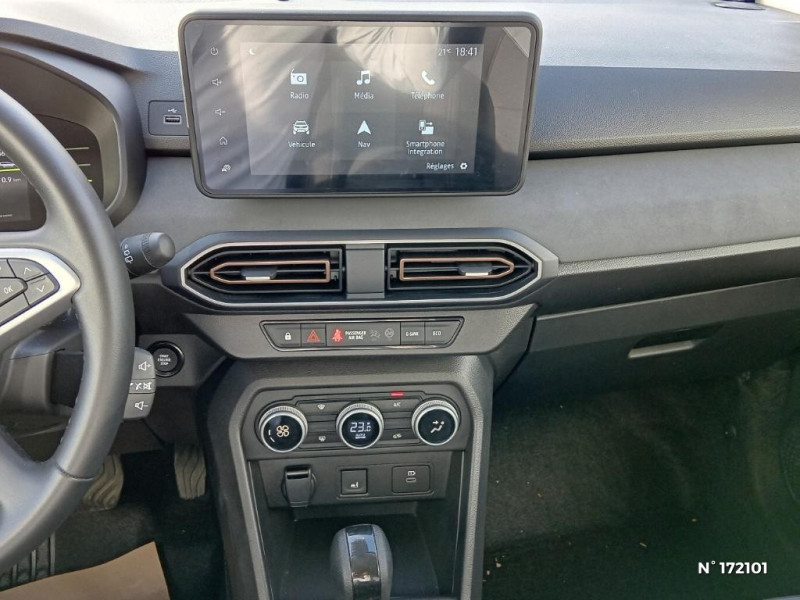 Media display (écran 8'', réplication smartphone, 4 haut-parleurs, 1 port USB) / Tapis de coffre / Système de freinage d'urgence autonome à des vitesses interurbaines 7-170km/h / Enjoliveurs bas de porte coffre / Cluster couleur TFT 7'' / Stripping Extreme / Jantes alliage 16'' MAHALIA noires avec cabochon Brun Cuivré / Extended Grip / Sellerie spécifique Extreme avec surpiqures Brun Cuivré / Volant Soft Feel TEP / Airbag latéral avant : thorax + rideau / Feux arrières avec signature lumineuse Y / Signature lumineuse DACIA en Y à LED / Rappel de bouclage de ceintures / Eclairage du coffre / Kit de gonflage / Eclairage plafonnier AR / Banquette AR avec dossier rabattable en portefeuille 1/3 -2/3 / Console semi-haute + rangement fermé avec accoudoir / Vitres, portes AR, custode et lunette arrière surteintées / Prise accessoire en rang 3