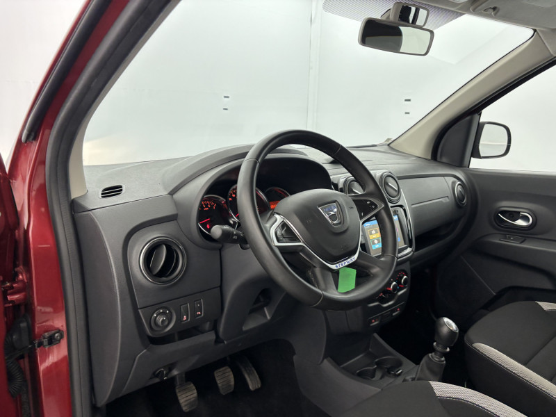 Jantes design 16'' Bayadere Dark Metal: / MEDIA NAV Evolution (navigation, radio DAB, USB, Bluetooth, Android Auto & Apple Carplay): / Système de contrôle de trajectoire (ESC) et aide au démarrage en côte: / 7 places: / Alerte visuelle et sonore du non bouclage des ceintures AV: / Baguettes latérales de protection noires: / Banquette 2è rangée rabattable avec dossier fractionnable 1/3 - 2/3: / Barres de toit longitudinales noires: / Boucliers ton carosserie: / Cache-bagages amovible: / Cartographie France: / Eclairage du coffre: / Harmonie carbone foncé: / Indicateur de changement de vitesse: / Plafonnier AR: / Poignées de portes intérieures chrome: / Prise accessoire console centrale et AR: / Rangement + accoudoirs 3ème rangée: / Rétroviseur de surveillance enfants: / Stop & Start: / Système anti-blocage des roues (ABS) et fonction antipatinage (ASR): / Système de fixation isofix aux 3 places latérales AR rang 2: / Tablette aviation: / Vitres de custodes AR pivotantes: / Volant et pommeau de vitesse soft feel: / Sellerie Stepway 2019: / / Dacia Dokker - Dacia Logan MCV