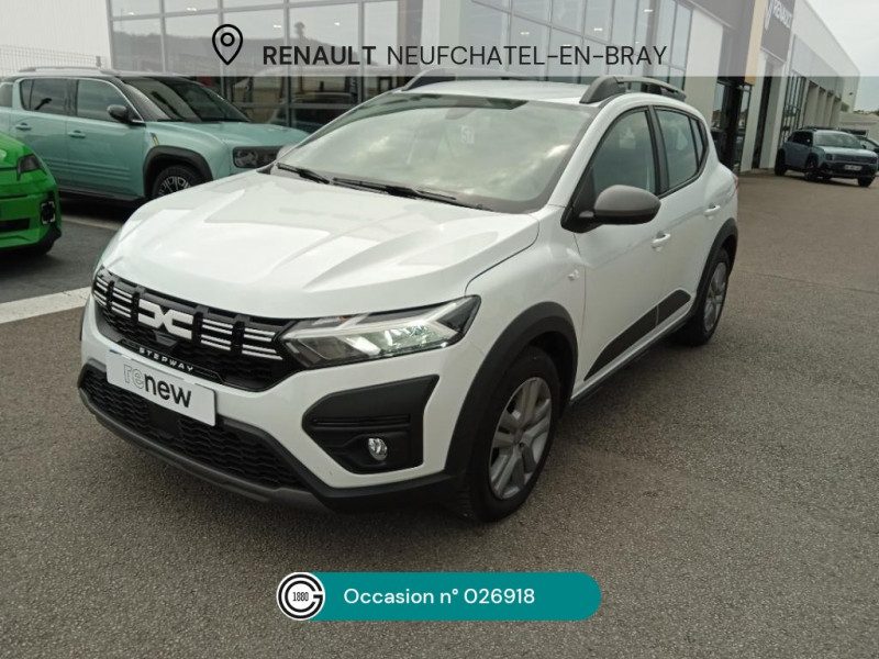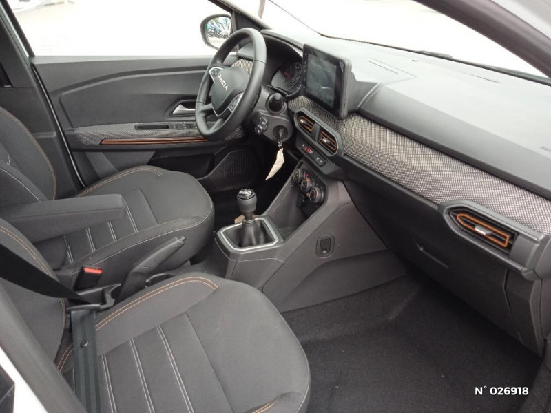 Enjoliveur 16'' Saria - Stepway / Kit de gonflage / Peinture opaque / Clé 3 boutons / Console basse + rangement ouvert / Cluster TFT / Sellerie Stepway avec surpiqures / Volant Soft Feel TEP / Airbag latéral avant : thorax + rideau / Feux arrières avec signature lumineuse Y / Signature lumineuse DACIA en Y à LED / Rappel de bouclage de ceintures / Plancher de coffre plat / Media display (écran 8'', réplication smartphone, 4 haut-parleurs, 1 port USB) / Système de freinage d'urgence autonome à des vitesses interurbaines 7-170km/h / Nouvelle identité visuelle / Fonction éco-mode