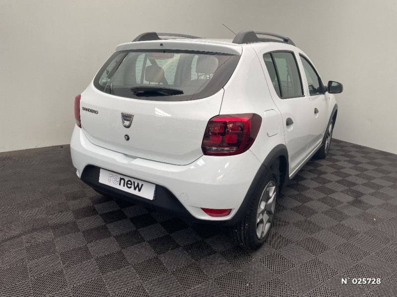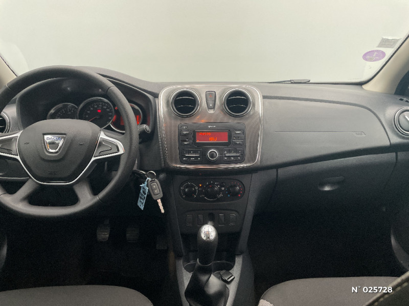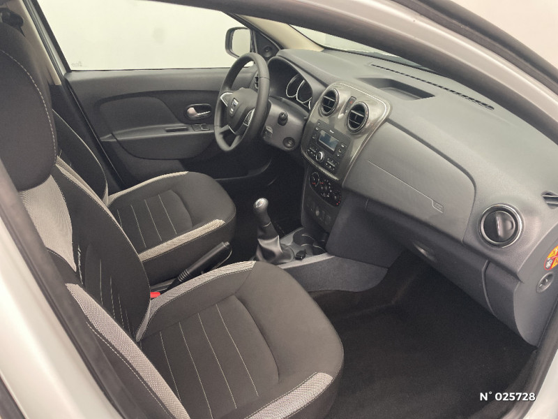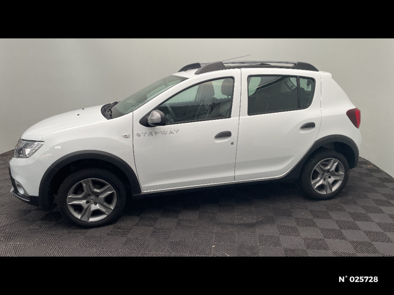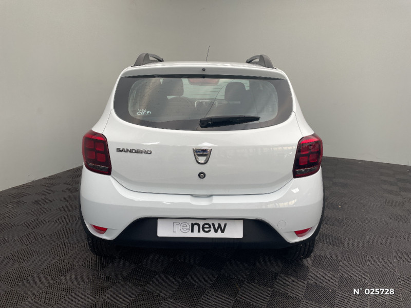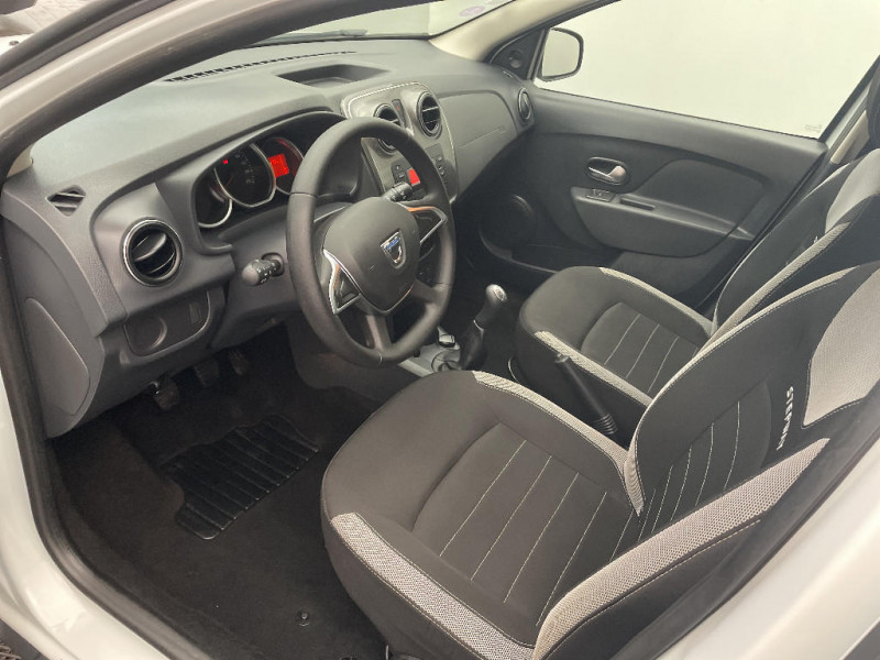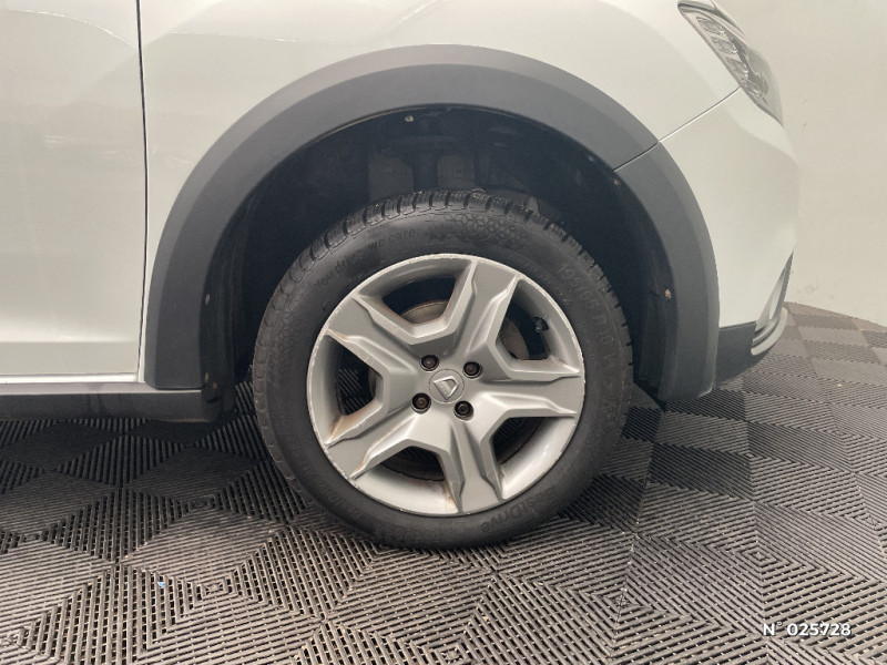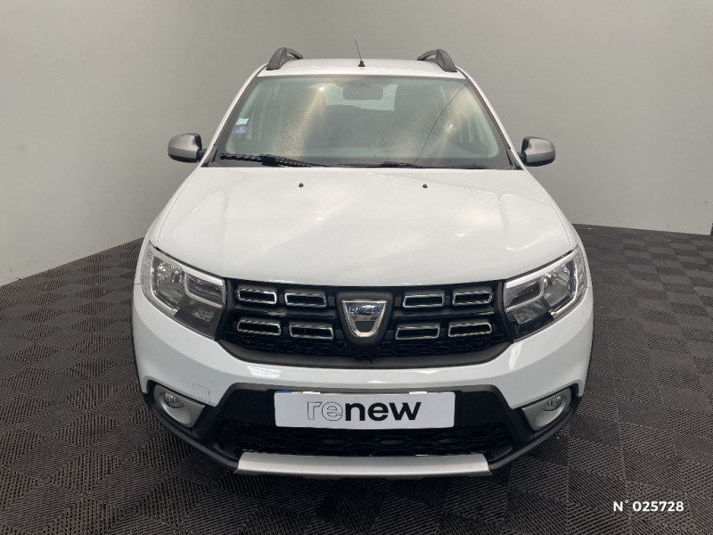 Boucliers ton carosserie / Stop & Start / Eclairage du coffre / Indicateur de changement de vitesse / Harmonie carbone foncé / Alerte non bouclage de ceintures AV / Poignées de portes extérieures noires / Kit de gonflage / Lève-vitres AR manuels / Peinture Blanc Glacier / Jantes design 16'' Bayadere Dark Metal / Poignées de portes intérieures chrome / Sellerie Stepway / Volant Dacia 4 branches / Poignées de portes intérieures chrome satiné / R-Plug & Music (radio, prises jack et USB, Bluetooth)