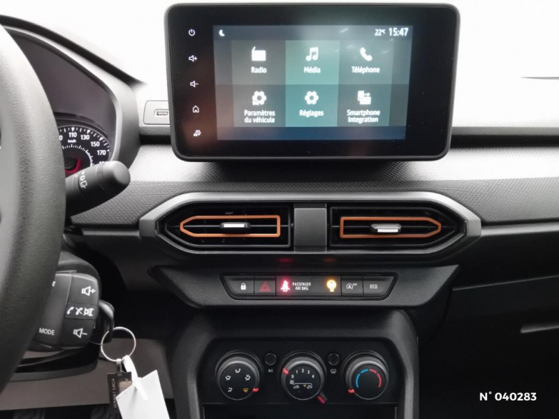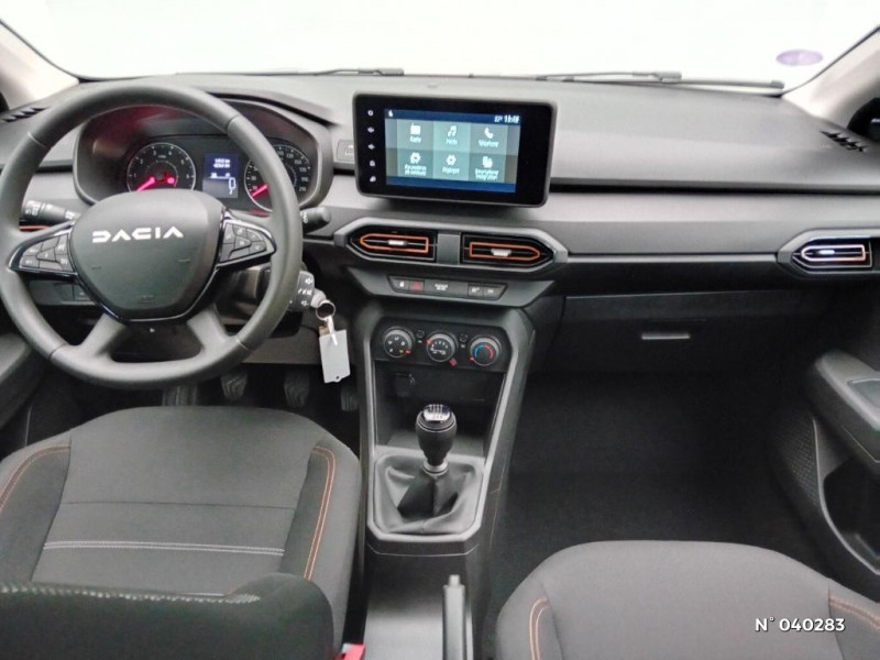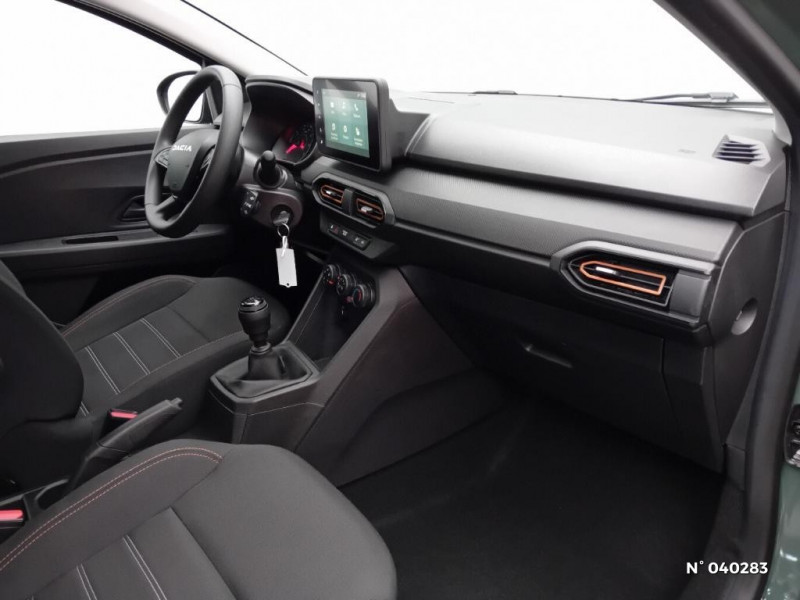 Rappel de bouclage de ceintures / Fonction éco-mode / Kit de gonflage / Lève-vitres AR manuels / Clé 3 boutons / Système de freinage d'urgence autonome à des vitesses interurbaines 7-170km/h / Nouvelle identité visuelle / Enjoliveur 16'' Saria - Stepway / Console basse + rangement ouvert / Cluster TFT / Sellerie Stepway avec surpiqures / Media control (Streaming audio bluetooth avec support téléphone, 2 haut-parleurs, 1 USB) / Airbag latéral avant : thorax + rideau / Feux arrières avec signature lumineuse Y / Signature lumineuse DACIA en Y à LED / Peinture opaque / Volant mousse