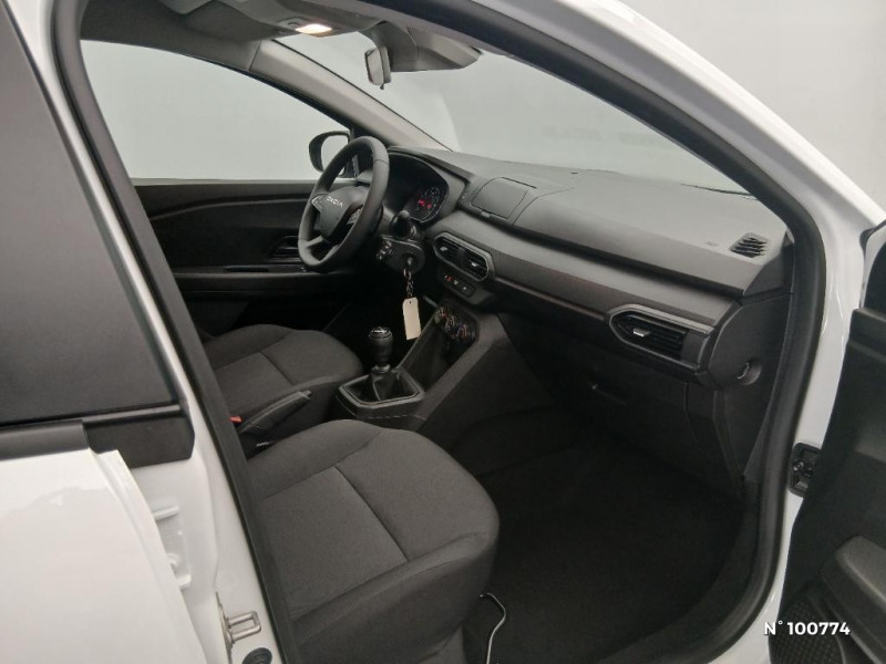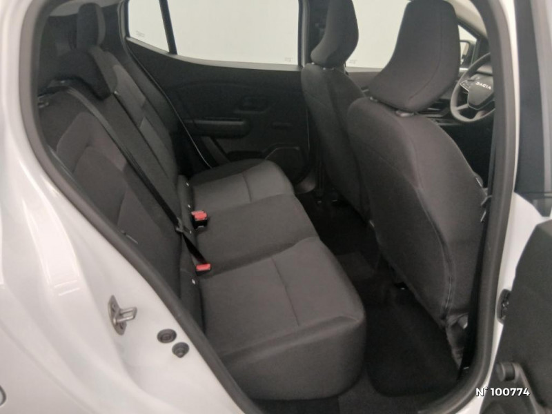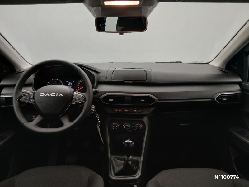 Enjoliveur 15'' Elma / Tableau de bord avec écran numérique 3,5'' et compteurs analogiques / Système de freinage d'urgence avancé (pieton, deux-rorues et intersection) / Prédisposition Ethylotest / Alerte franchissement de ligne et assistant maintien dans la voie / Boîte de vitesse automatique / ESP+ASR / Volant mousse / Eclairage du coffre / Kit de gonflage / Lève-vitres AR manuels / Chauffage avec recyclage d'air / Clé 3 boutons / Console basse + rangement ouvert / Sellerie essentiel / Media control (Streaming audio bluetooth avec support téléphone, 2 haut-parleurs, 1 USB) / Airbag latéral avant : thorax + rideau / Feux arrières avec signature lumineuse Y / Signature lumineuse DACIA en Y à LED / Rappel de bouclage de ceintures