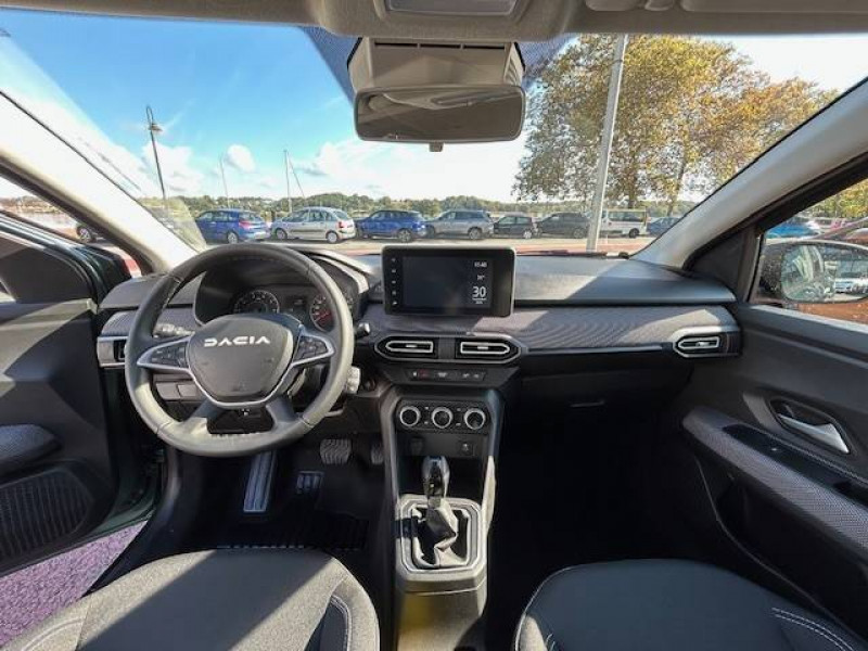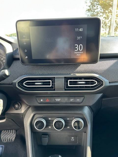 Airbag latéral AV : thorax + rideau / Alerte franchissement de ligne et assistant maintien dans la voie / Antenne requin / Boîte de vitesse Automate à fonction continue / Console basse + rangement ouvert / Eclairage du coffre / ESP+ASR / Feux AR avec signature lumineuse Y / Fonction éco-mode / Jantes 16'' RANDIA / Kit de gonflage / Media Display (écran tactile 8'' sans navigation, radio, réplication smartphone USB, 4 haut-parleurs audiostreaming Bluetooth, satellite de commandes au volant, 1 prise USB-A et 1 prise USB-C) / Peinture opaque / Plancher de coffre double niveau / Prédisposition Ethylotest / Rappel de bouclage de ceintures / Sellerie avec surpiqures grises / Signature lumineuse DACIA en Y à LED / Spécifique Journey (rétroviseurs extérieurs Noir Nacré, tapis de sol textile, seuils de porte AV) / Système de freinage d'urgence avancé (pieton, deux-rorues et intersection) / Tableau de bord avec écran numérique 3,5'' et compteurs analogiques / Volant Soft Feel TEP