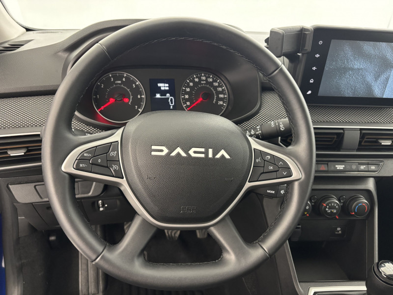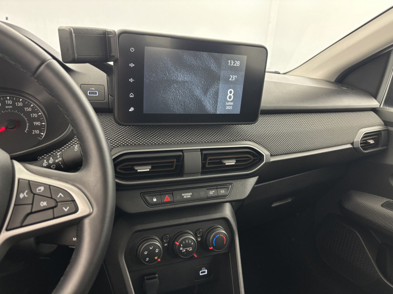 Airbag latéral AV : thorax + rideau / Clé 3 boutons / Console basse + rangement ouvert / Eclairage du coffre / Enjoliveur 16'' Saria / Feux AR avec signature lumineuse Y / Fonction éco-mode / Kit de gonflage / Media display (écran 8'', réplication smartphone, 4 haut-parleurs, 1 port USB) / Nouvelle identité visuelle / Rappel de bouclage de ceintures / Rétroviseurs extérieurs ton carrosserie / Sellerie Stepway avec surpiqures / Signature lumineuse DACIA en Y à LED / Système de freinage d'urgence autonome à des vitesses interurbaines 7-170km/h / Tableau de bord avec écran numérique 3,5'' et compteurs analogiques / Volant Soft Feel TEP /
