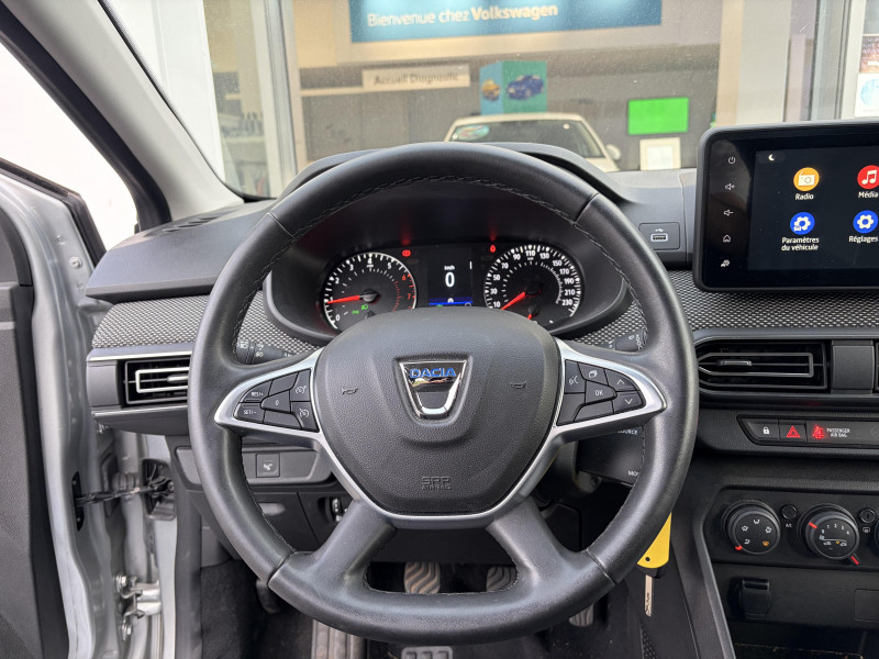 Signature lumineuse DACIA en Y à LED / Airbag latéral AV : thorax + rideau / Alternateur renforcé / Classes énergetiques B / Cluster TFT / Clé 3 boutons / Console basse + rangement ouvert / Enjoliveur 15'' Sorane / Feux AR avec signature lumineuse Y / Harmonie intérieure / Kit de gonflage / Media display (écran 8'', réplication smartphone, 4 haut-parleurs, 1 port USB) / Rappel de bouclage de ceintures / Roues tôle 15" / Rétroviseurs extérieurs ton carrosserie / Système de freinage d'urgence autonome à des vitesses interurbaines 7-170km/h / Volant Soft Feel TEP