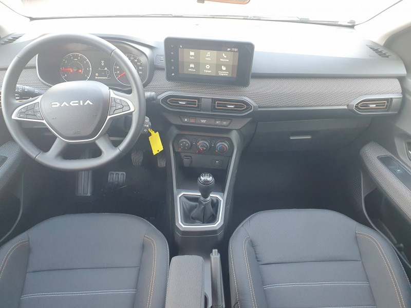 Airbag latéral AV : thorax + rideau / Alerte franchissement de ligne et assistant maintien dans la voie / Boîte de vitesse manuelle 6 / Clé 3 boutons / Console basse + rangement ouvert / Eclairage du coffre / Enjoliveur 16'' ATARA / ESP+ASR / Feux AR avec signature lumineuse Y / Fonction éco-mode / Kit de gonflage / Media Display (écran tactile 8'' sans navigation, radio, réplication smartphone USB, 4 haut-parleurs audiostreaming Bluetooth, satellite de commandes au volant, 1 prise USB-A et 1 prise USB-C) / Peinture opaque / Prédisposition Ethylotest / Rappel de bouclage de ceintures / Rétroviseurs extérieurs ton carrosserie / Sellerie Stepway avec surpiqures / Signature lumineuse DACIA en Y à LED / Système de freinage d'urgence avancé (pieton, deux-rorues et intersection) / Tableau de bord avec écran numérique 3,5'' et compteurs analogiques / Volant Soft Feel TEP